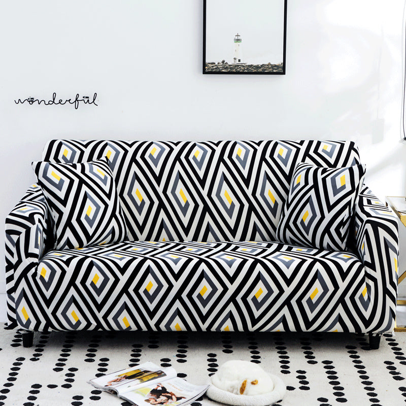 Black, White & Yellow Geometric Key Pattern Sofa Couch Cover