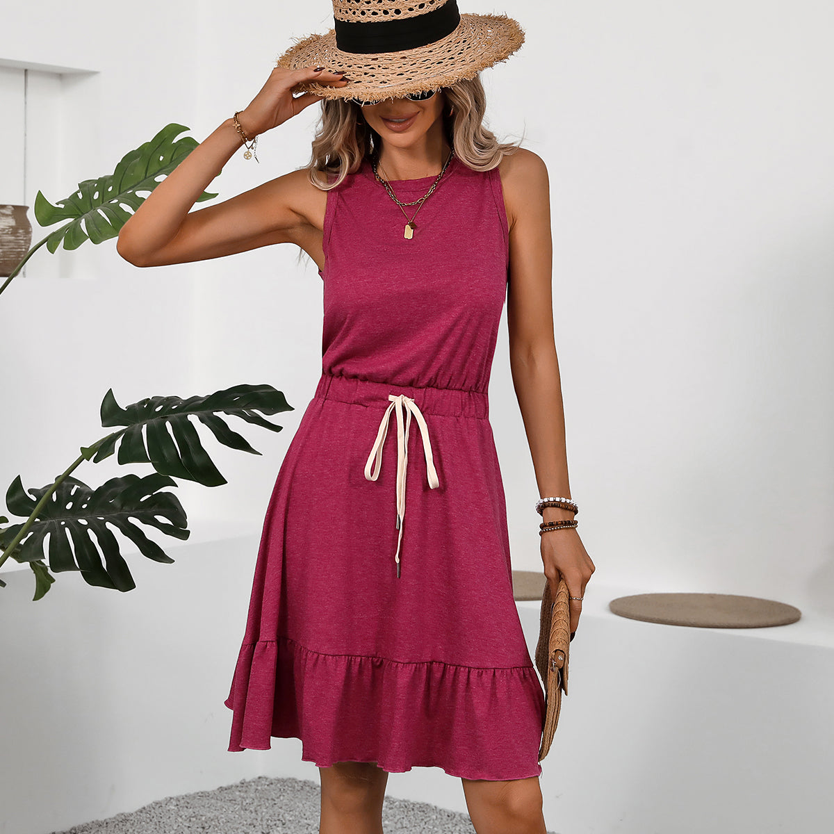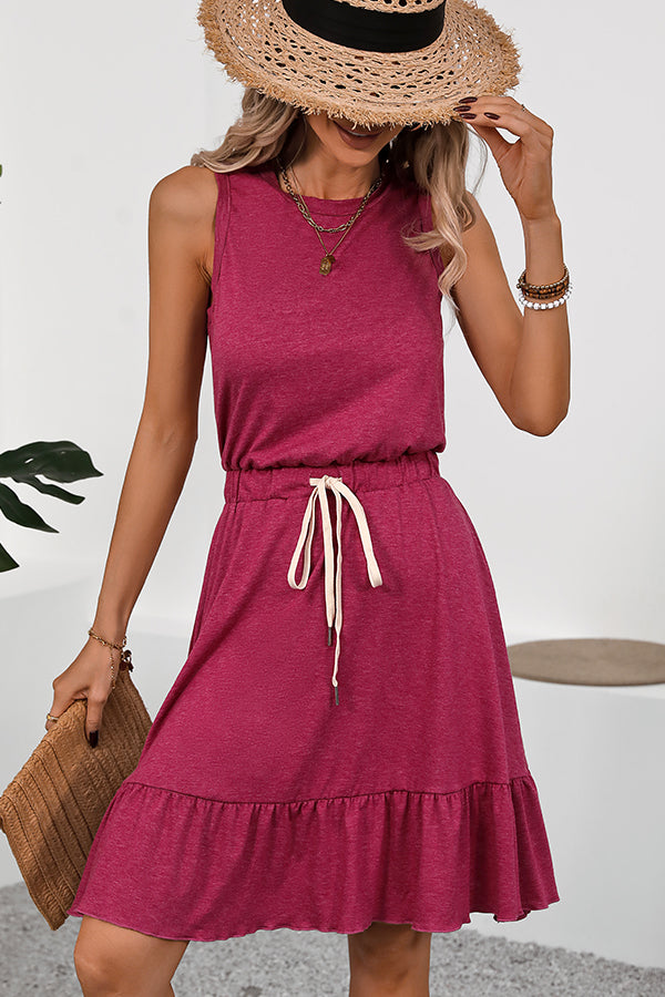 Solid Color Drawstring Waist Casual Dress
