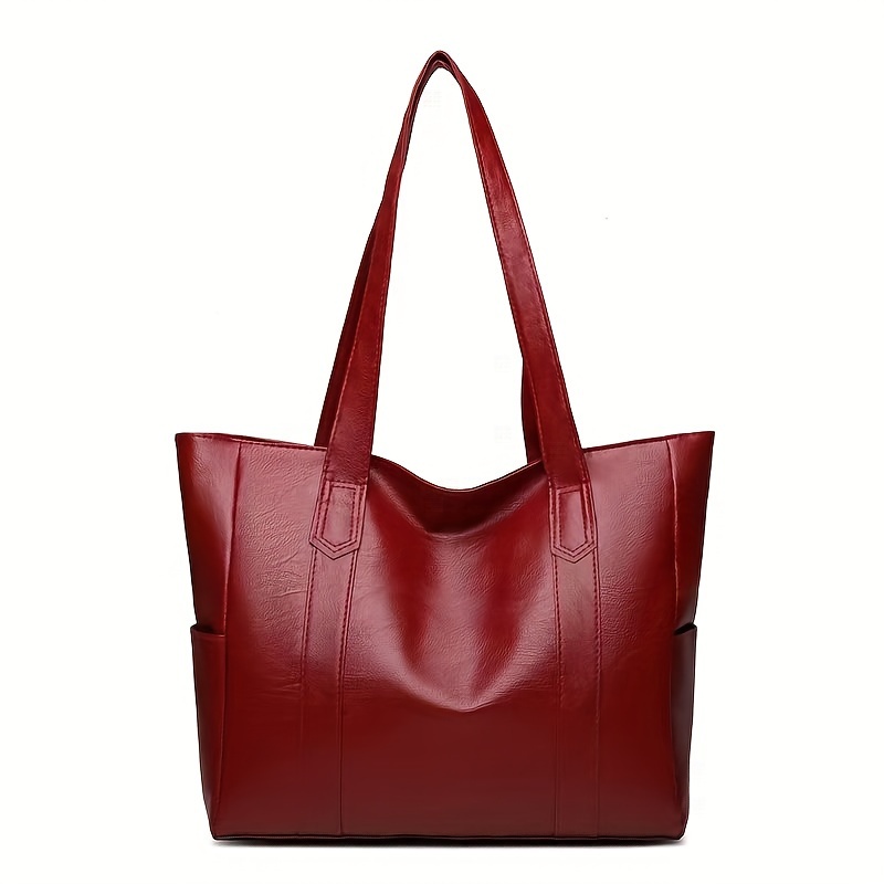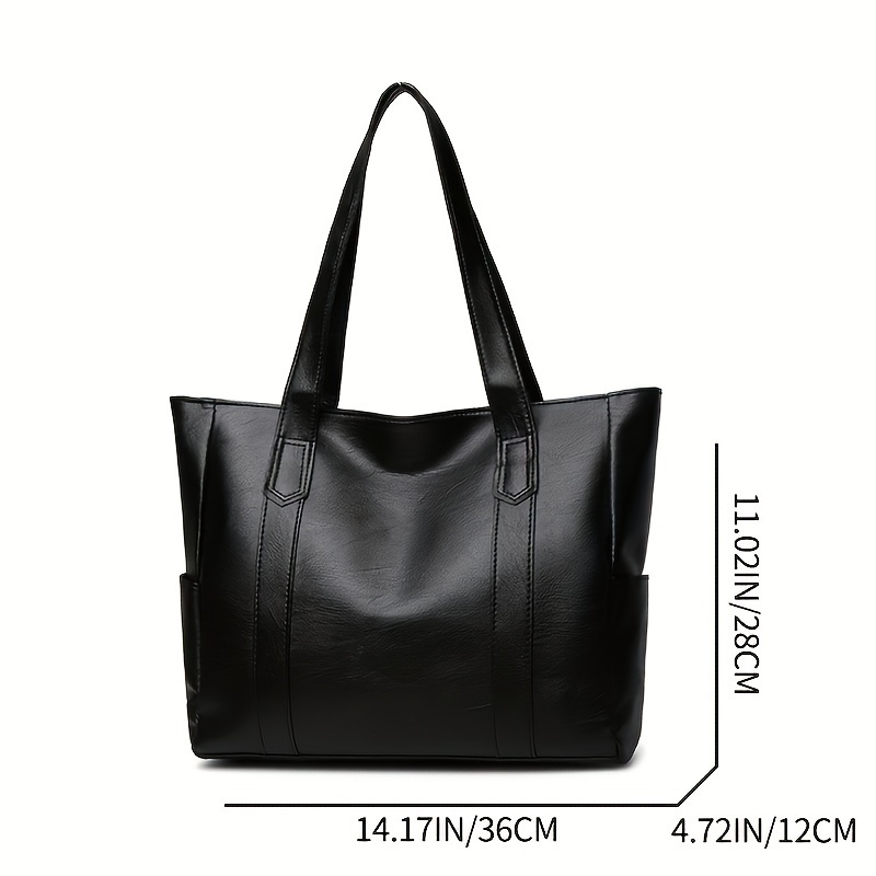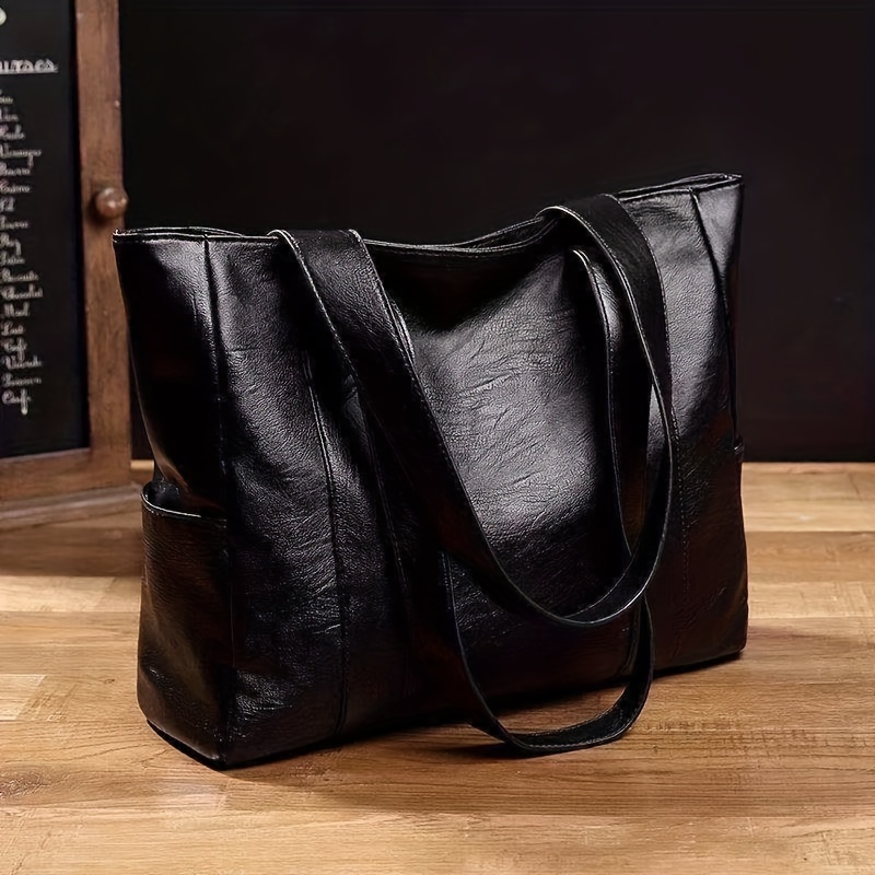Faux Leather Tote Bag, Multi Pockets Bag, Large Handbags For Work School Travel