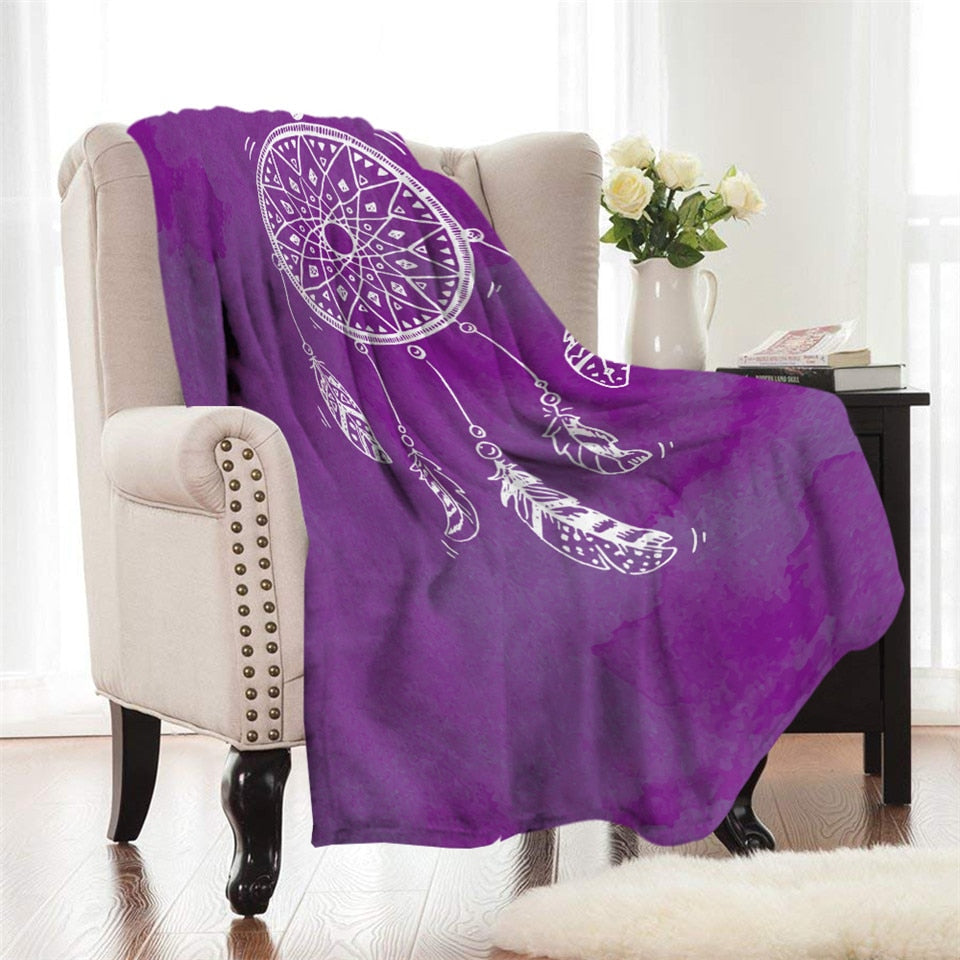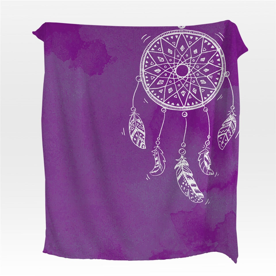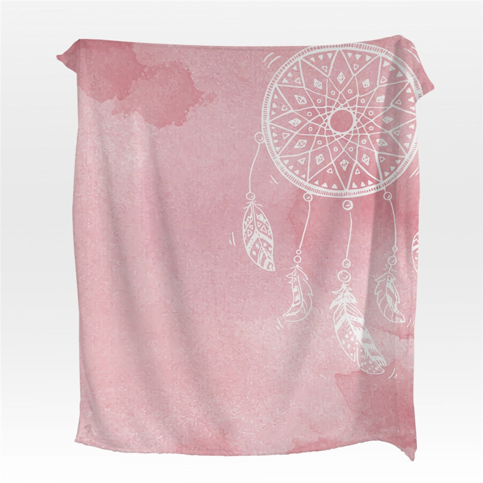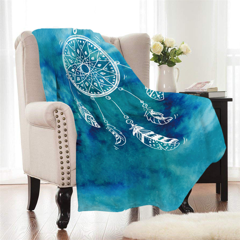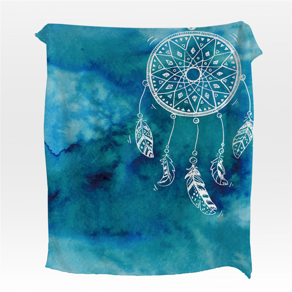 Fleece Watercolor Dreamcatcher Throw Blanket