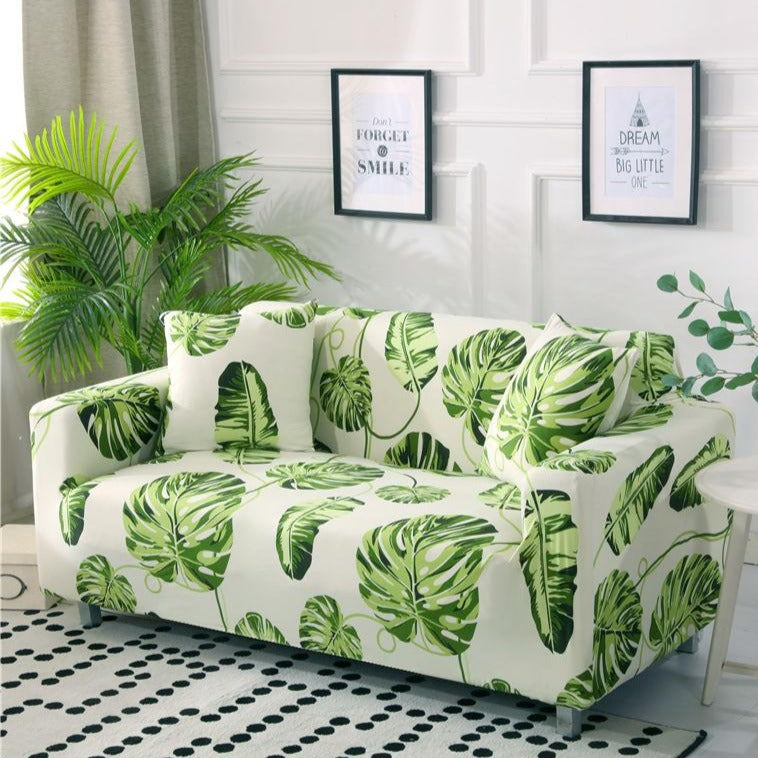 Floating Green Palm Leaf Pattern Sofa Couch Cover