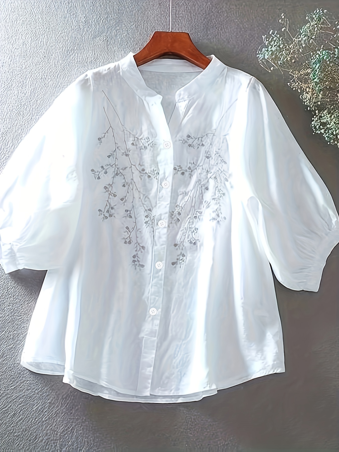 Be the first to review “Floral Pattern Simple Blouse, Elegant Button Front Stand Collar Blouse, Women’s Clothing” Cancel reply