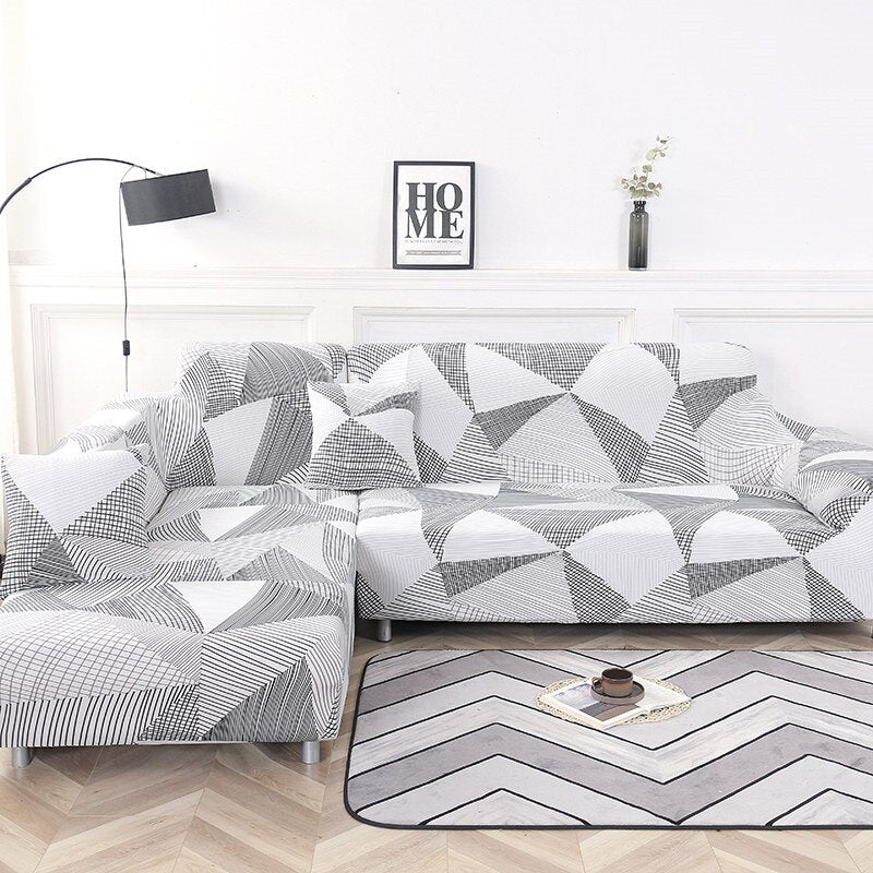 Gray / White Abstract Triangle Pattern Sofa Couch Cover