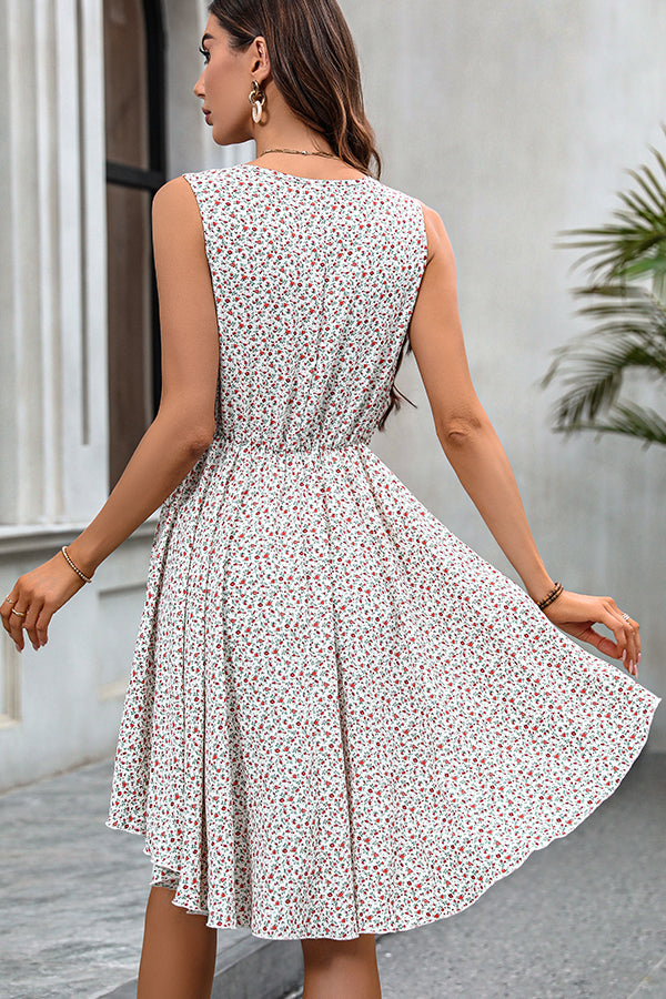 Floral Print V Neck Ruffle Hem Dress