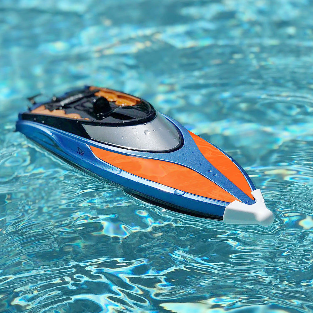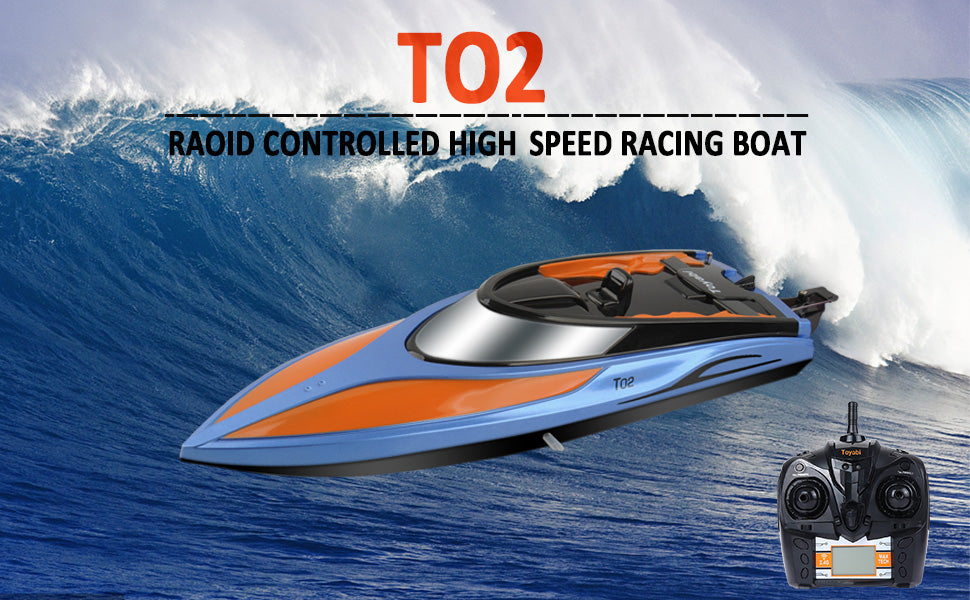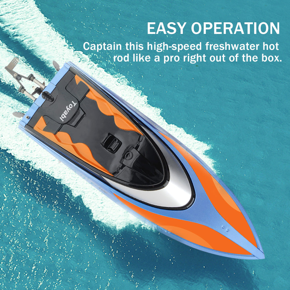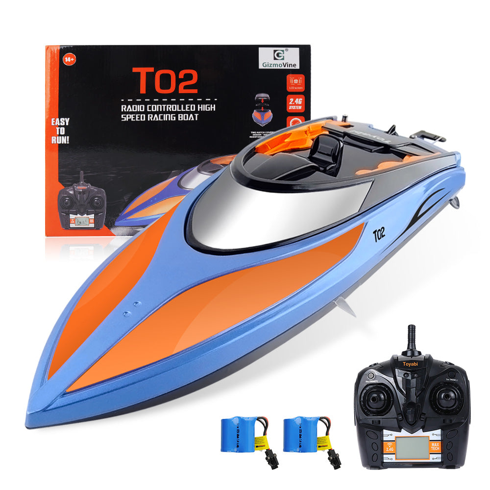 GizmoVine 2021 Version (H102)-T02 Remote Control Boat High Speed (20MPH+) RC Boats for Pools and Lakes with Extra Battery for Kids and Adults , Blue and Orange