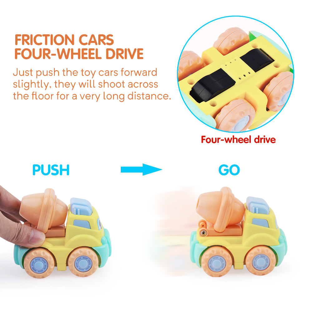 Gizmovine 4WD Mini Cartoon Inertial Cars Construction Vehicle Truck Toy Friction Powered Push Go
