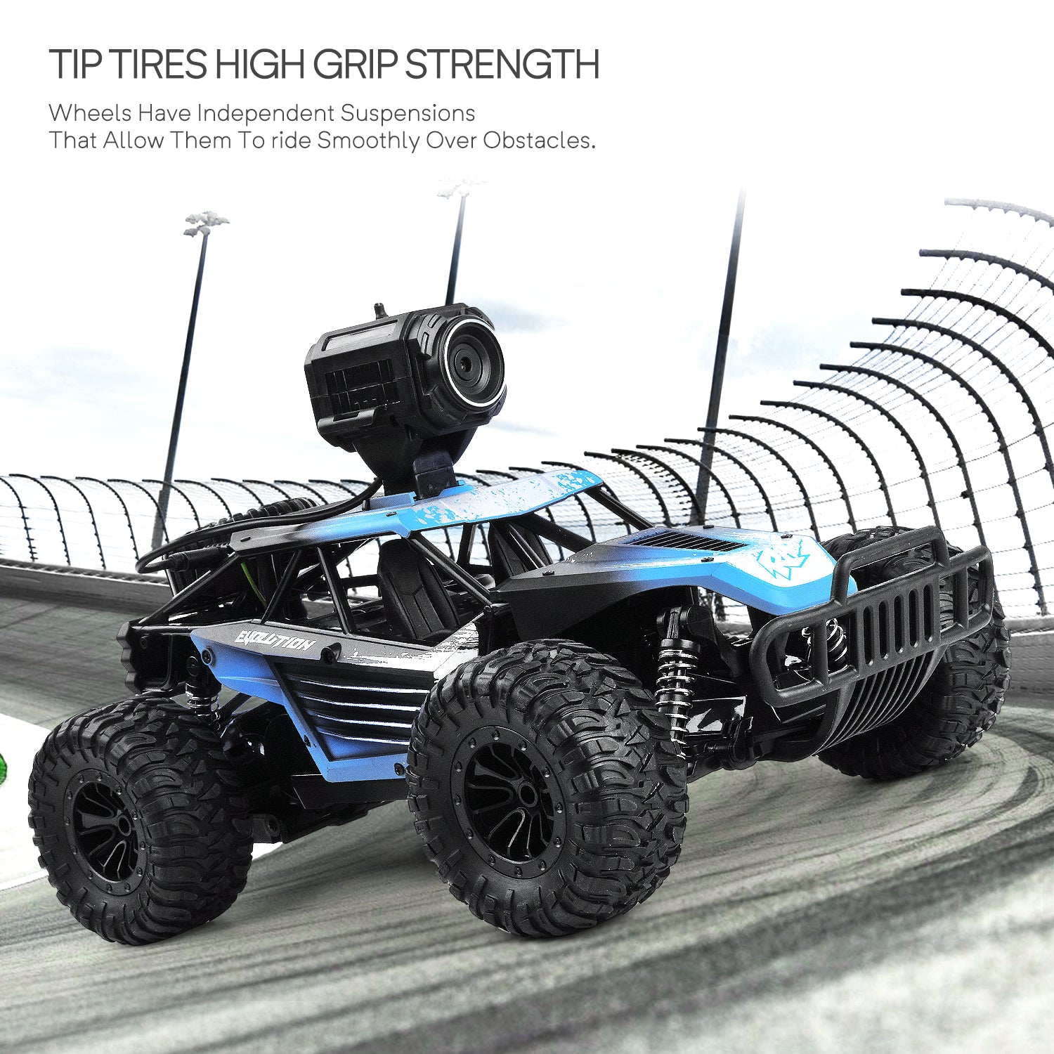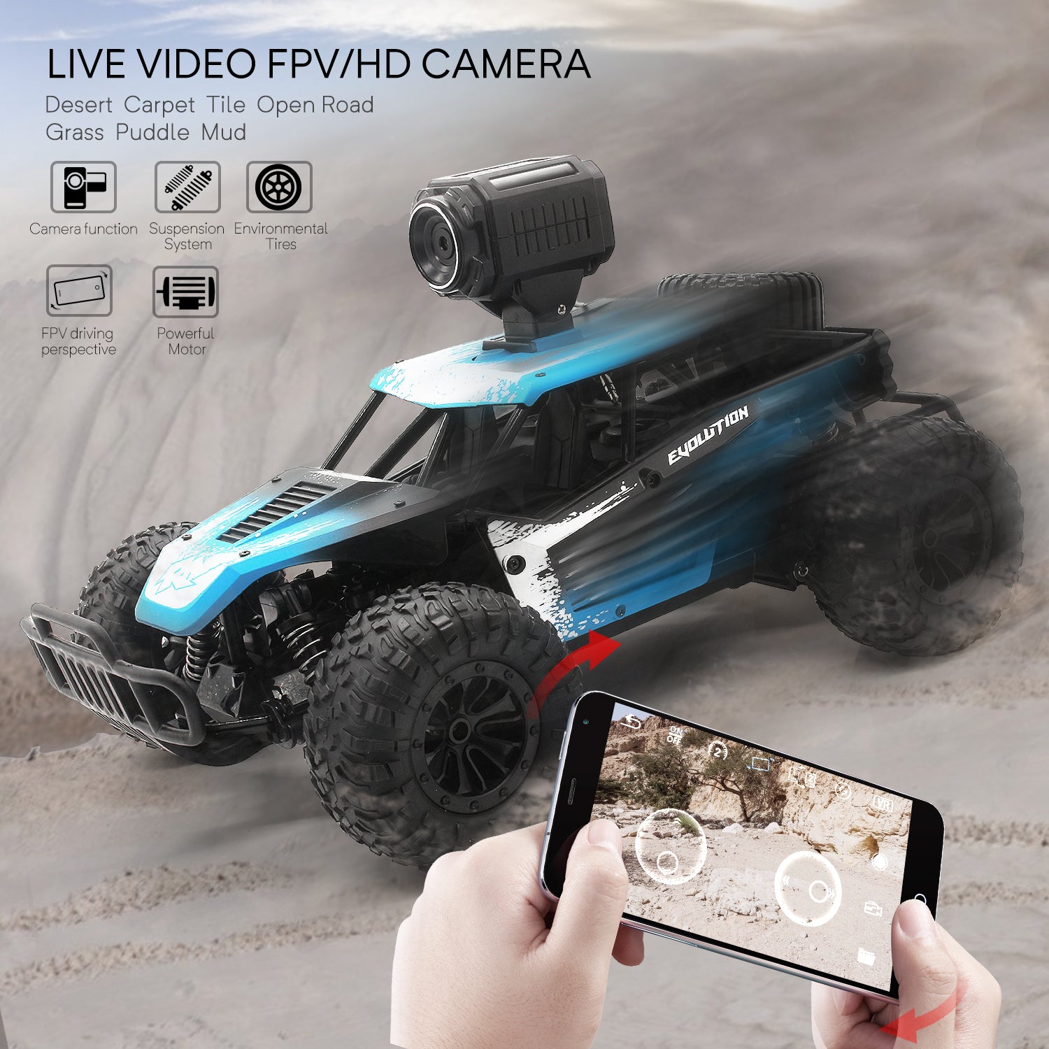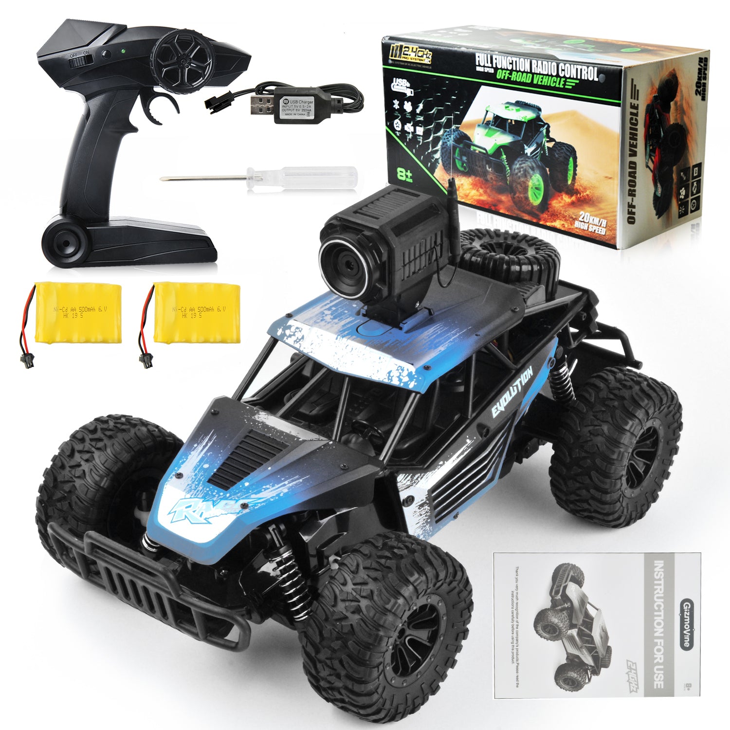 Gizmovine HQ02 Wify Remote Control Car with Camera, High Speed Racing Off-Road RC Cars with 2 Rechargeable Batteries, Waterproof RC Monster Trucks Buggy Vehicle Electric Toy Cars for All Kids Boy, Blue