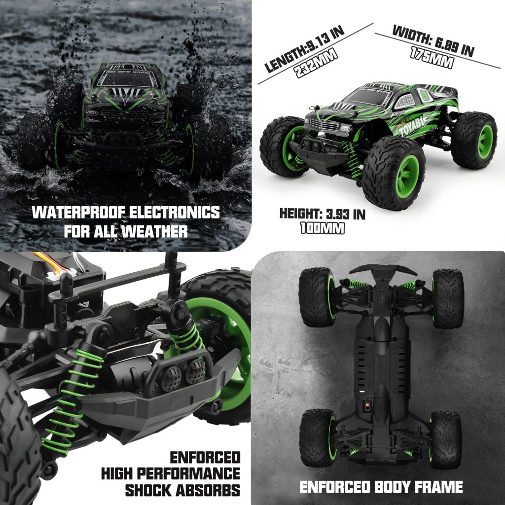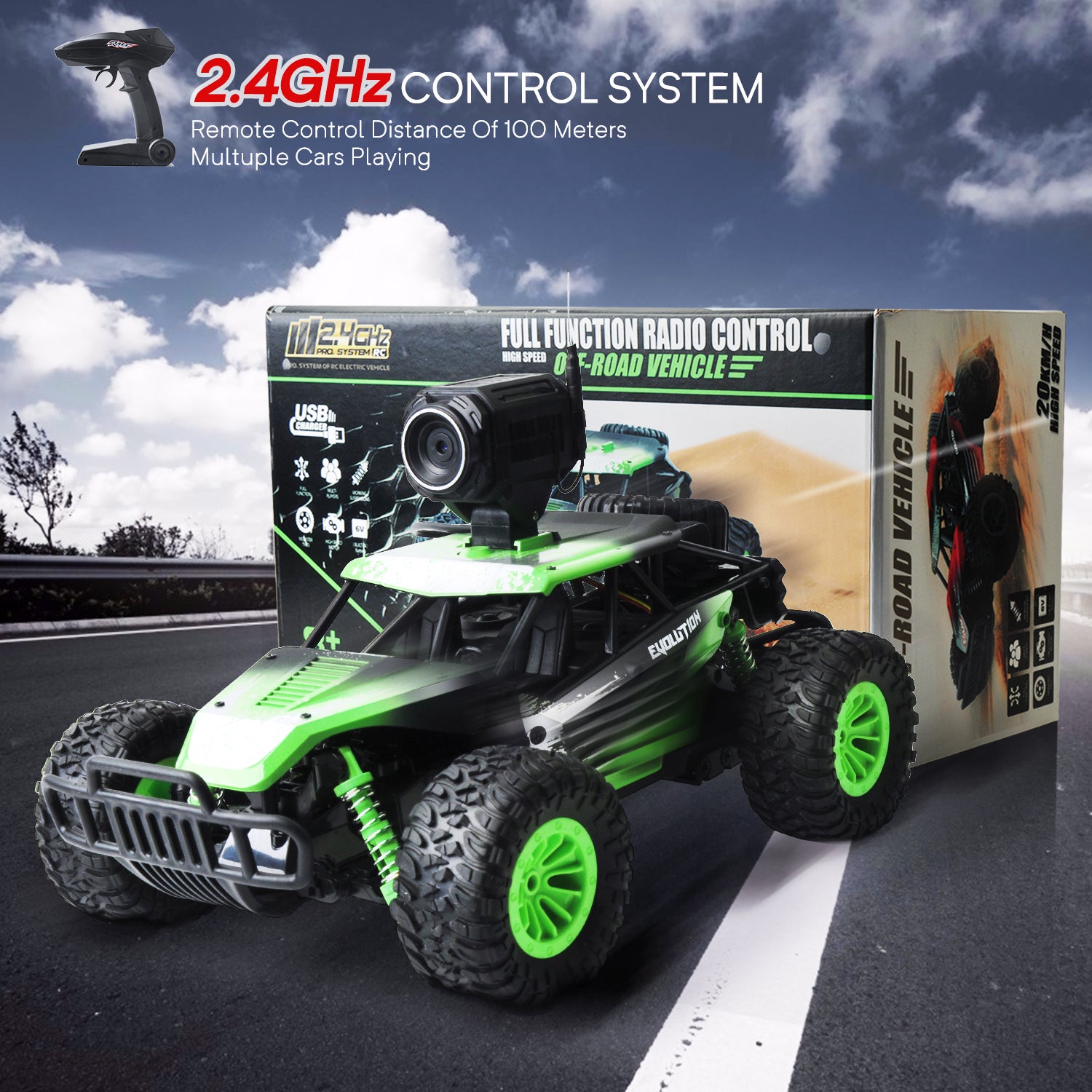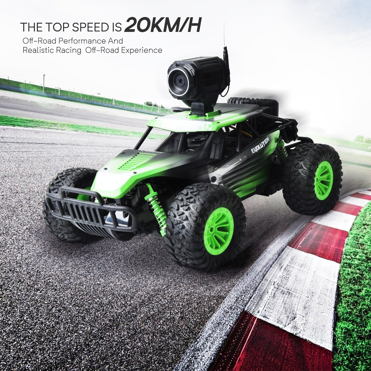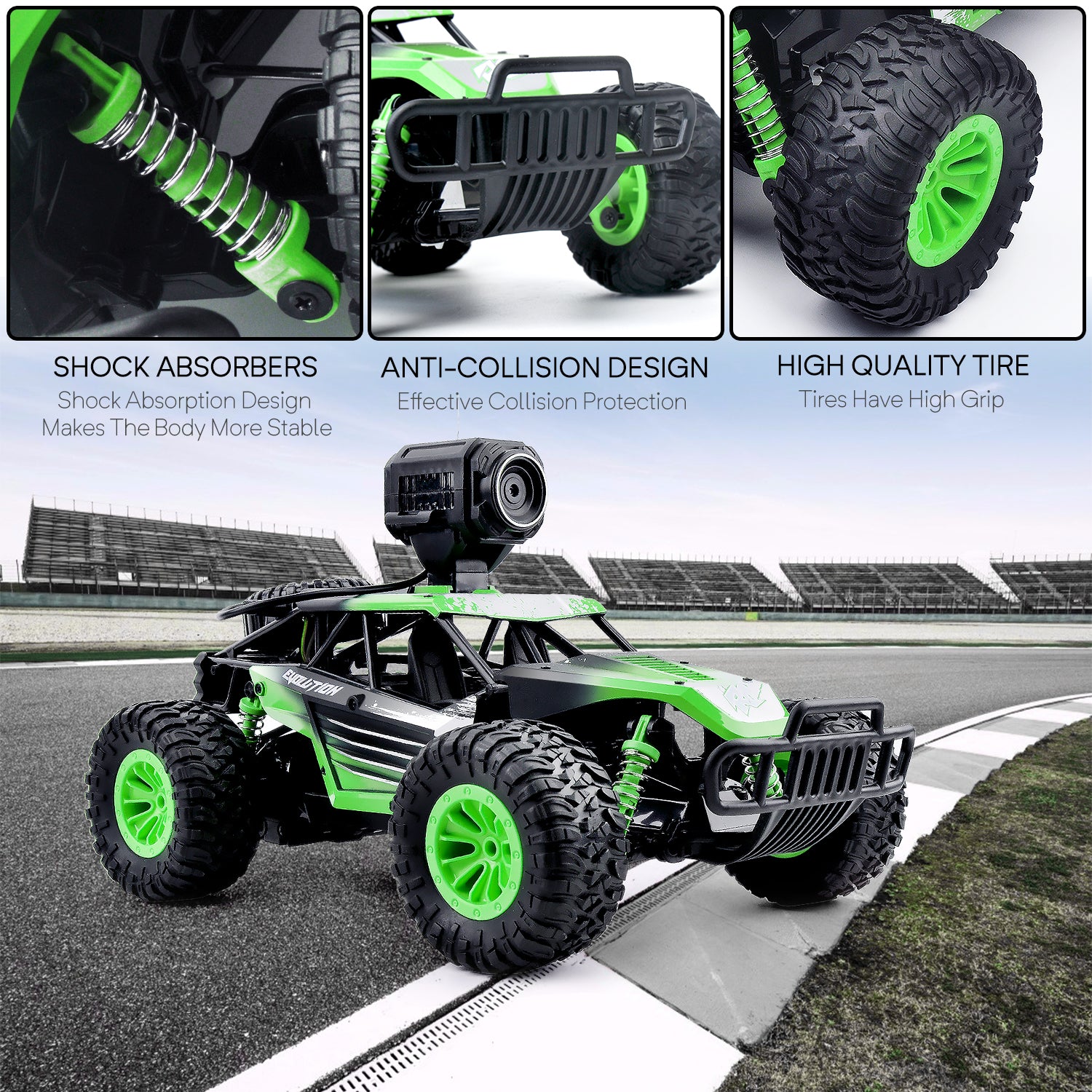 Gizmovine HQ02 Wify Remote Control Car with Camera, High Speed Racing Off-Road RC Cars with 2 Rechargeable Batteries, Waterproof RC Monster Trucks Buggy Vehicle Electric Toy Cars for All Kids Boy, Green