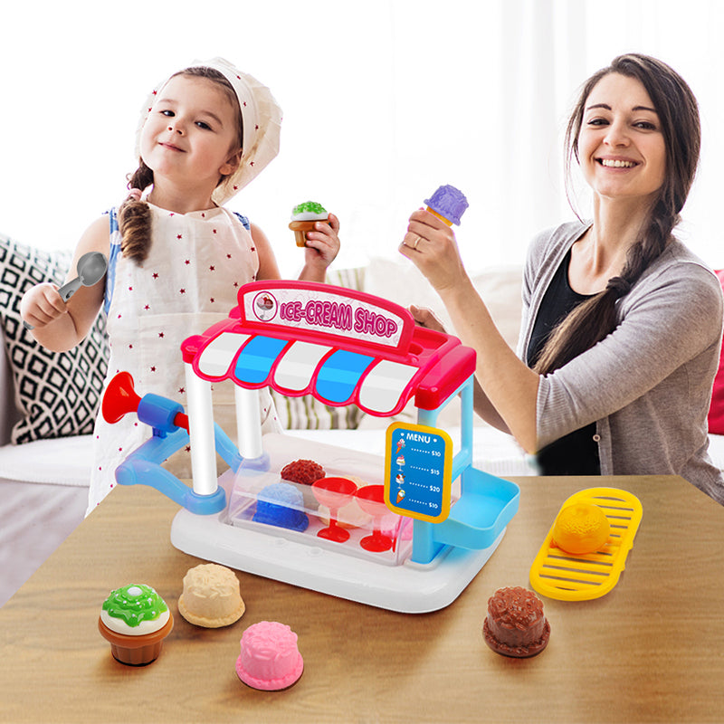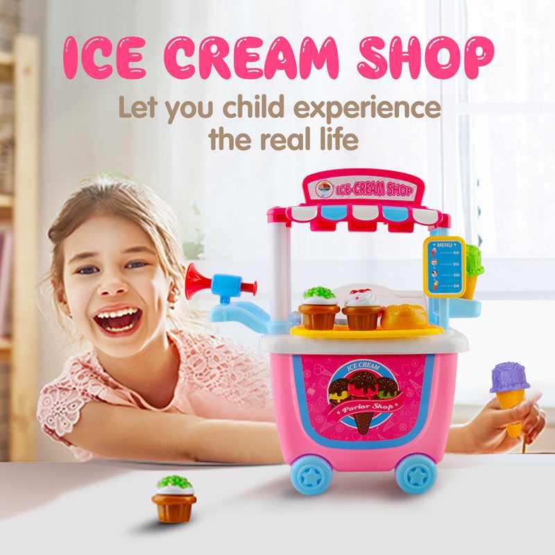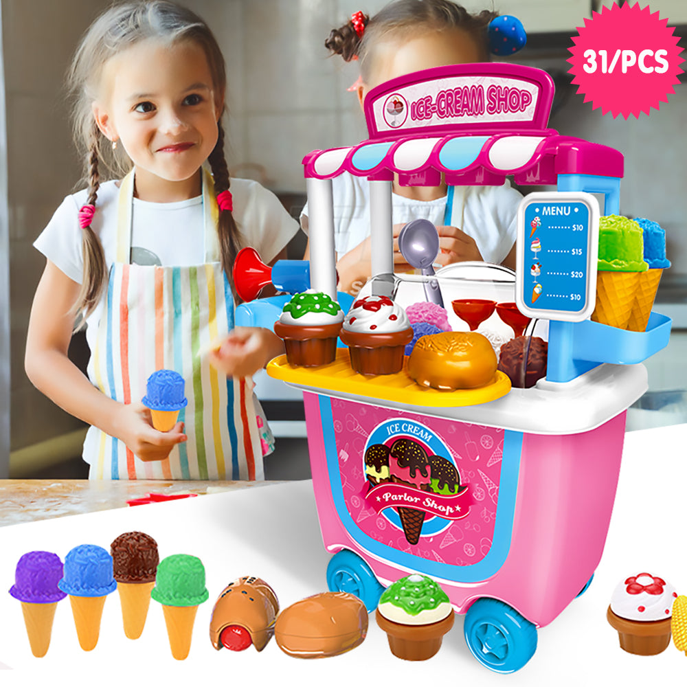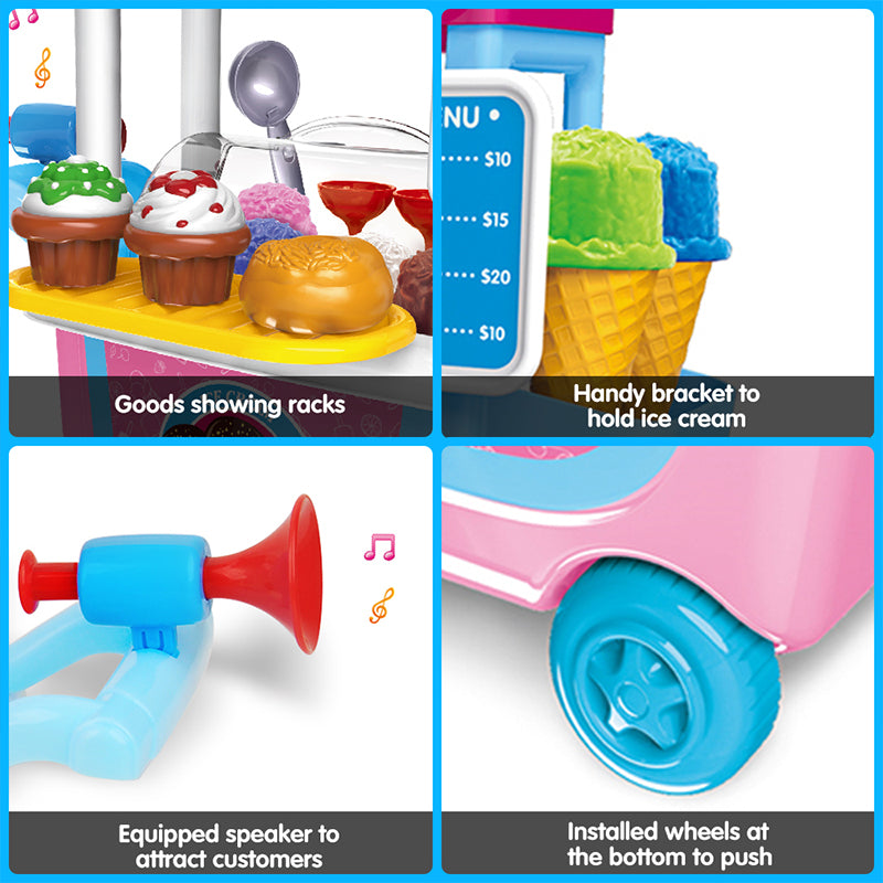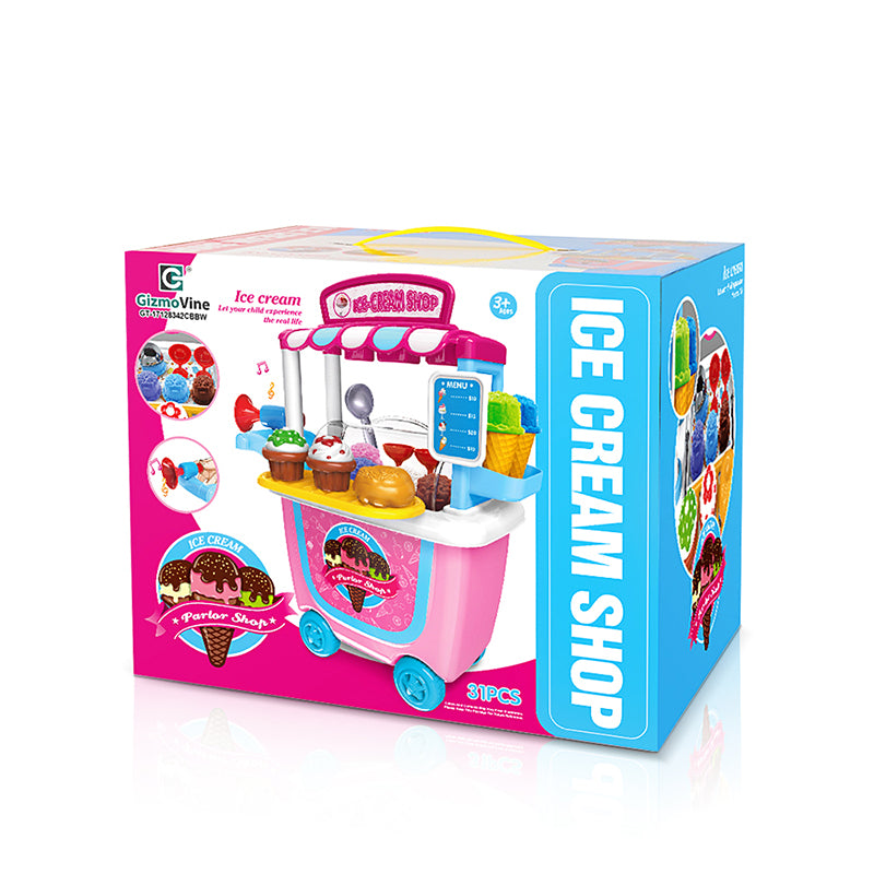 Gizmovine Ice Cream Pretend Toys Set 31pcs Pretend School Playset Food Truck Ice Cream Cart Toys for Kids Boys Girls