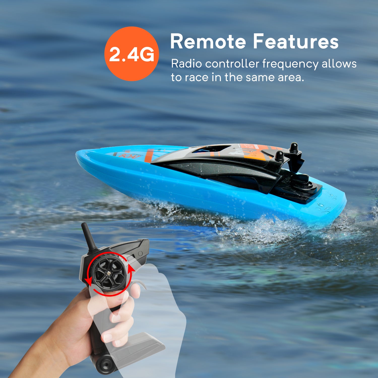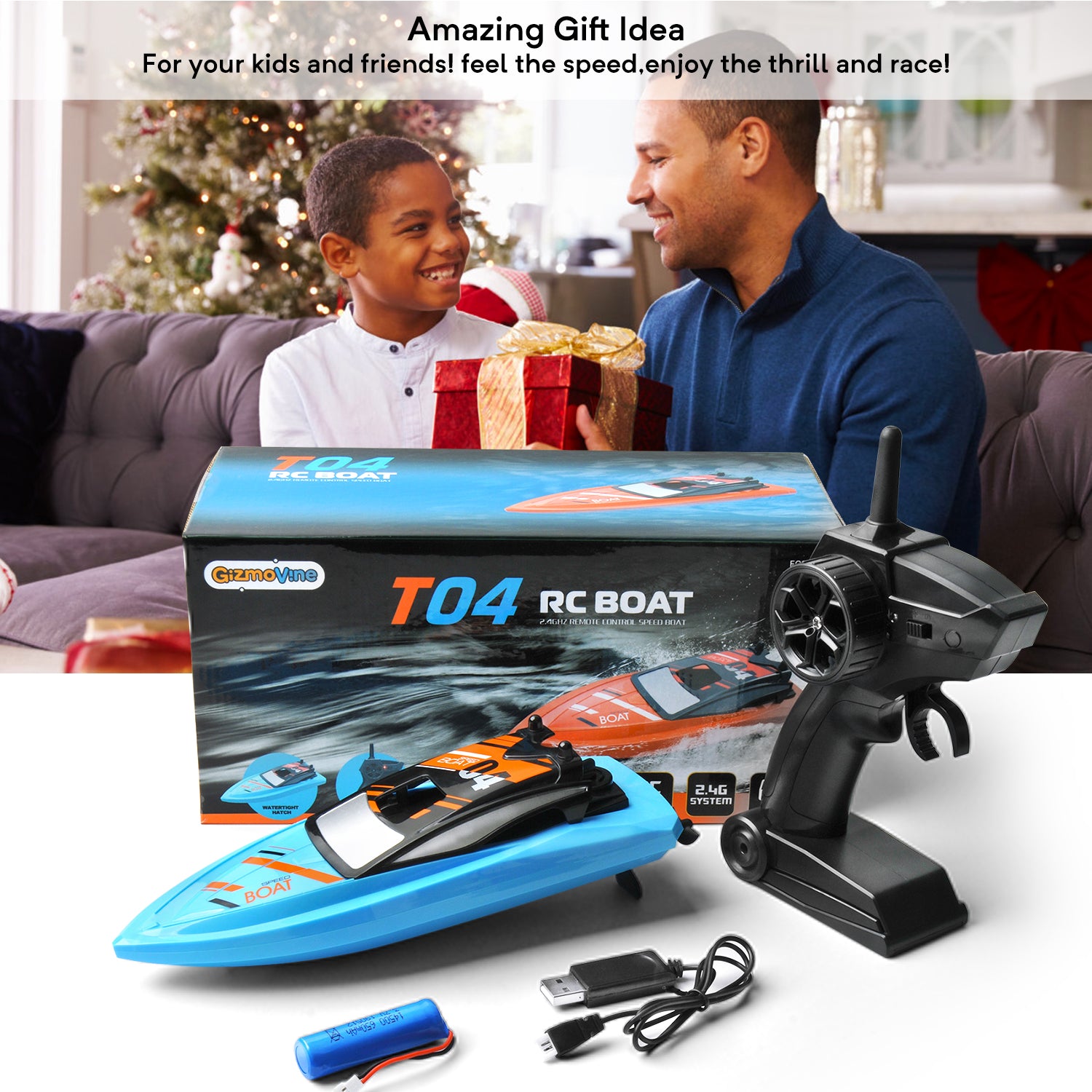 GizmoVine T04 Remote Control Boats for Pools and Lakes, 2.4GHz High Speed RC Boats for Kids, Adventure Racing Boat Toys for Boys, Blue