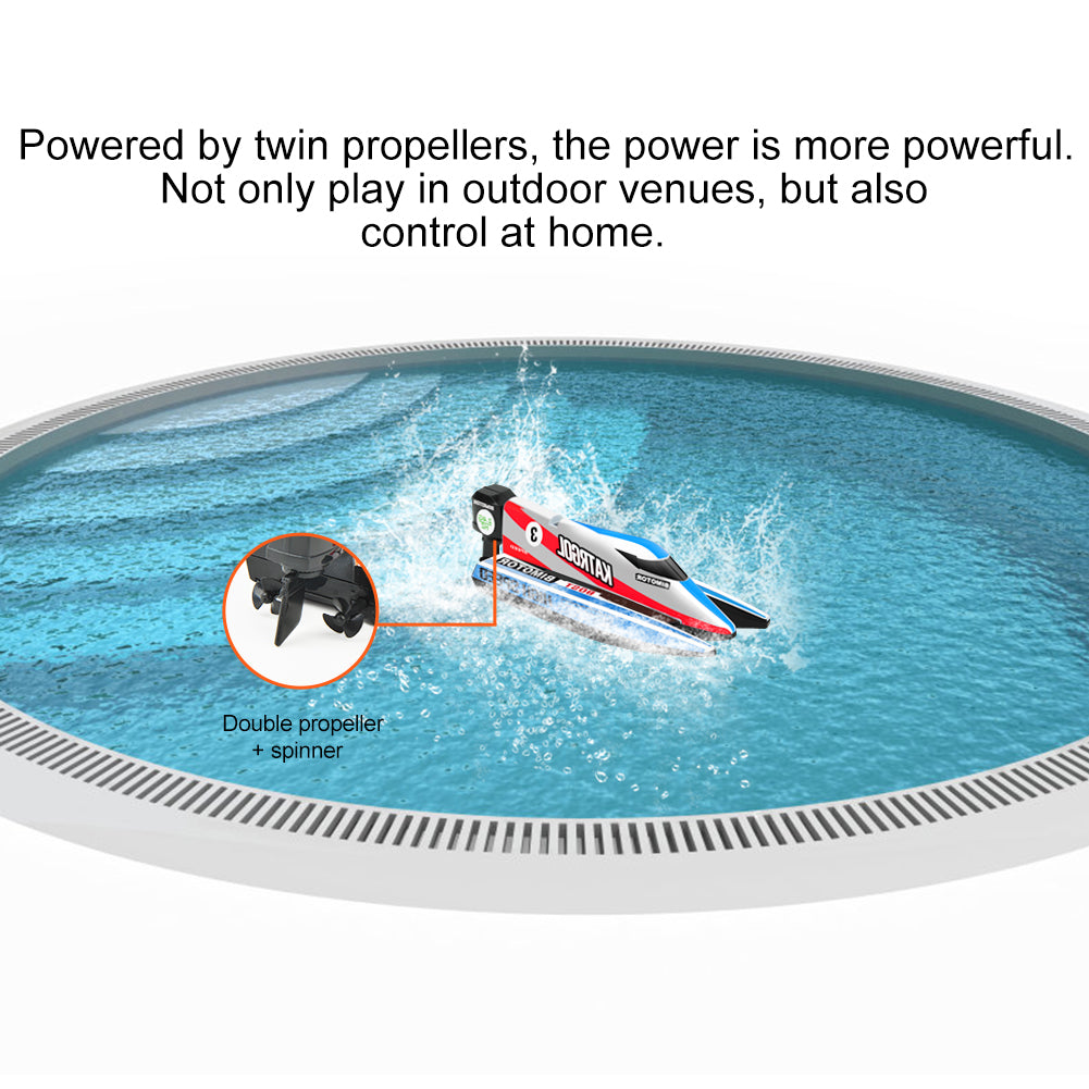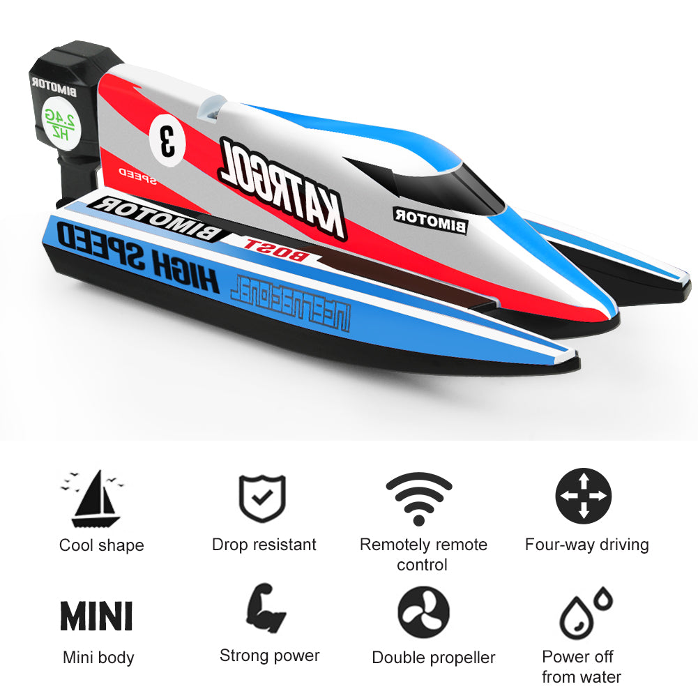 GizmoVine T06 Mini Remote Control Double Hull Speed Boat for Pools and Ponds, Blue