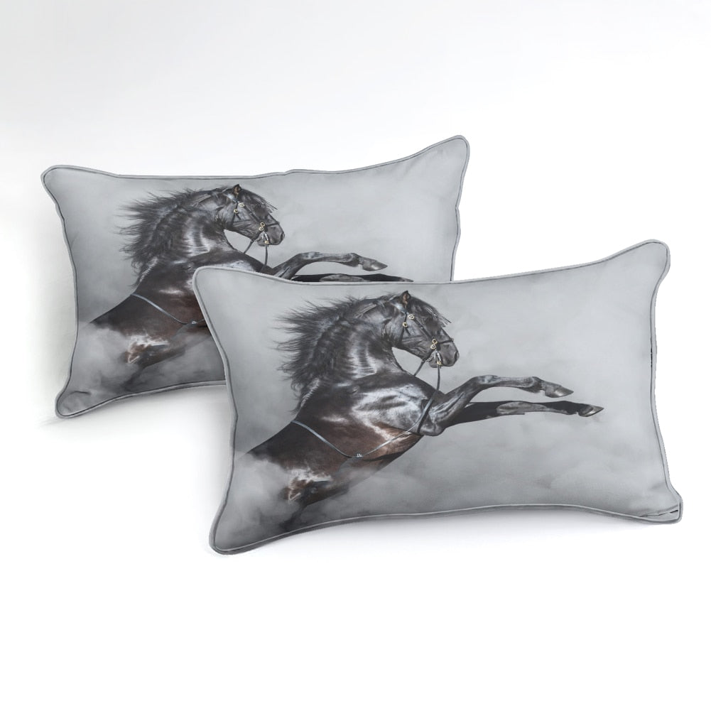 Gray 2/3-Piece Black Stallion Horse Duvet Cover Set