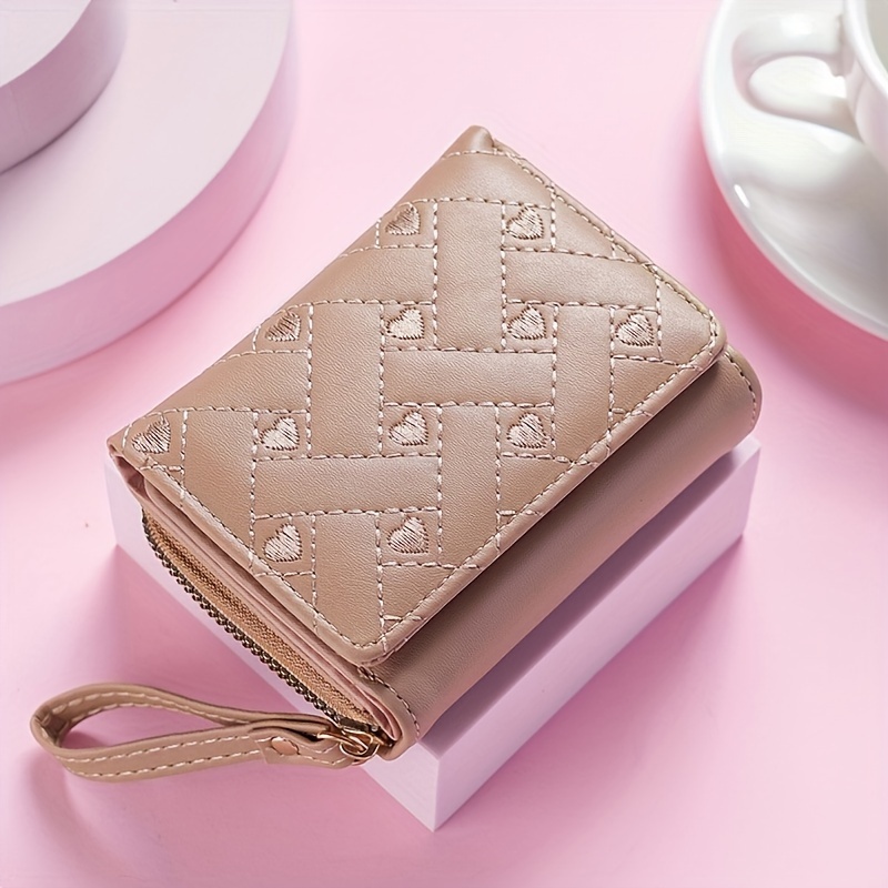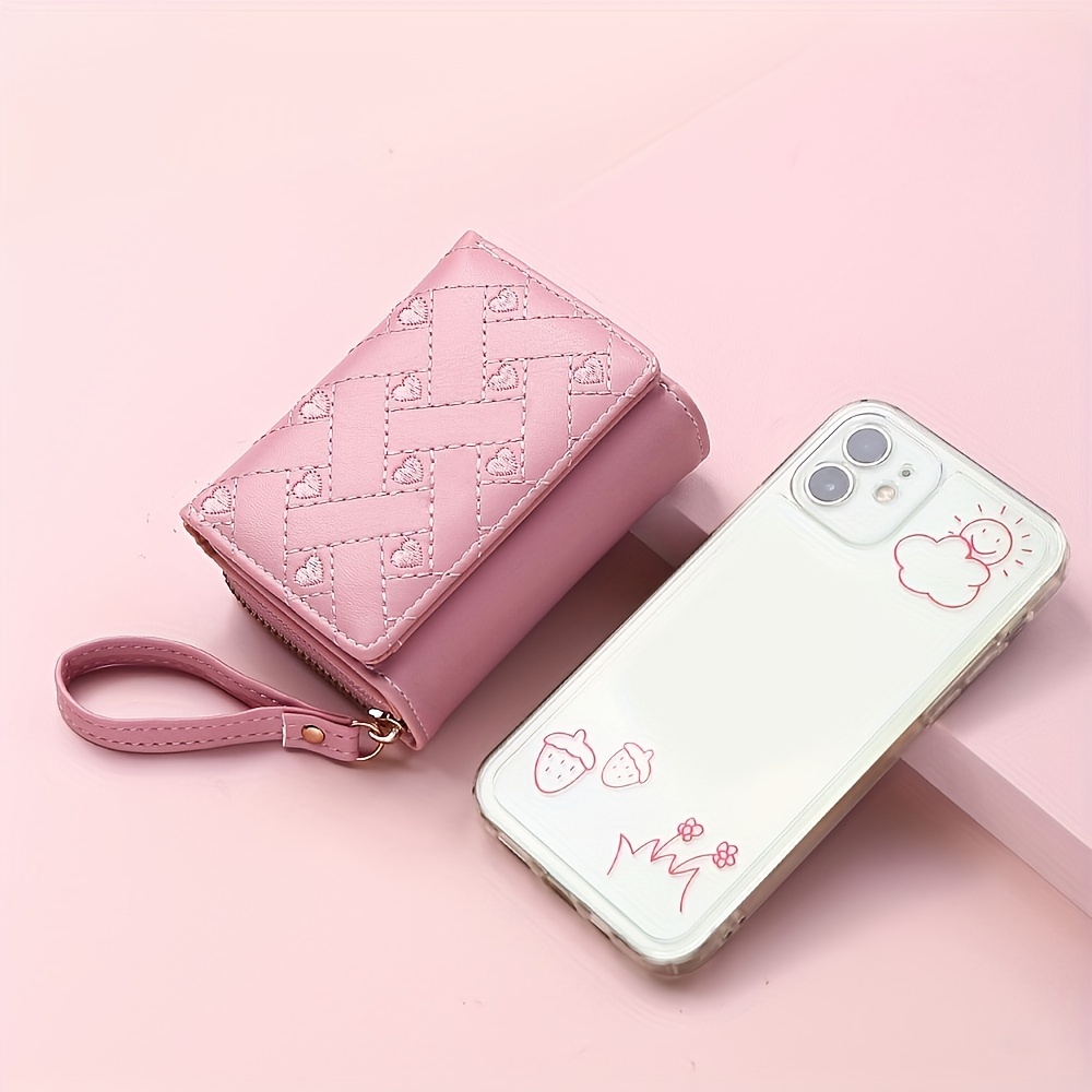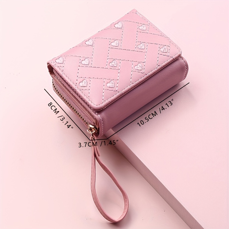Heart Embroidered Faux Leather Wallet, Women’s Small Cute Wallet With Multi Card Slots