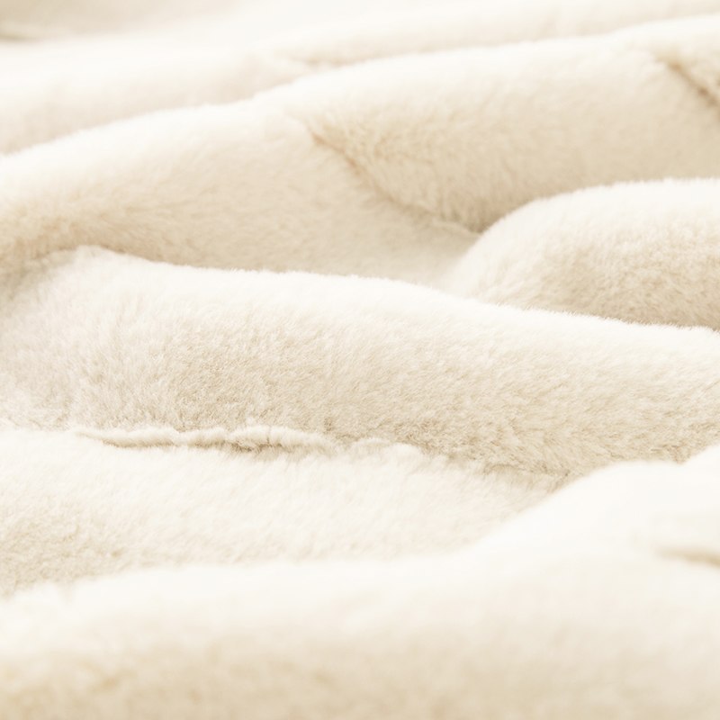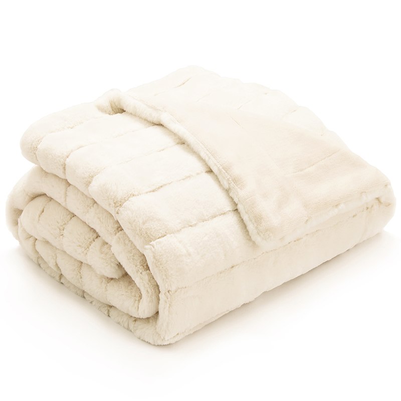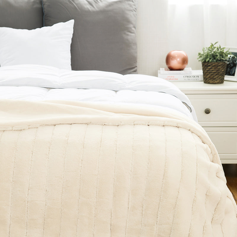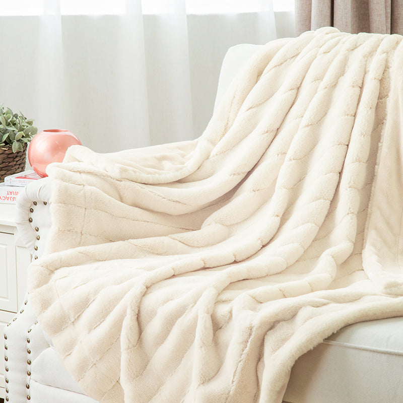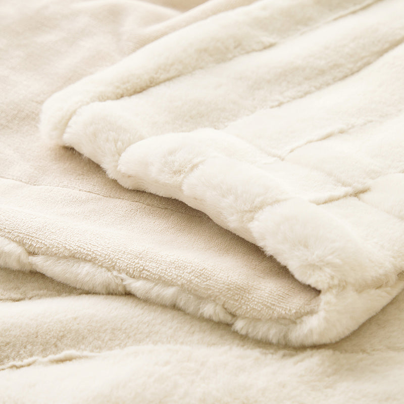 Ivory Ribbed Fleece Faux Rabbit Fur Throw Blanket