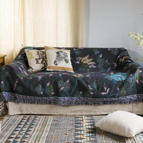 Knitted Vintage Floral Bird Sofa Throw Cover Blanket