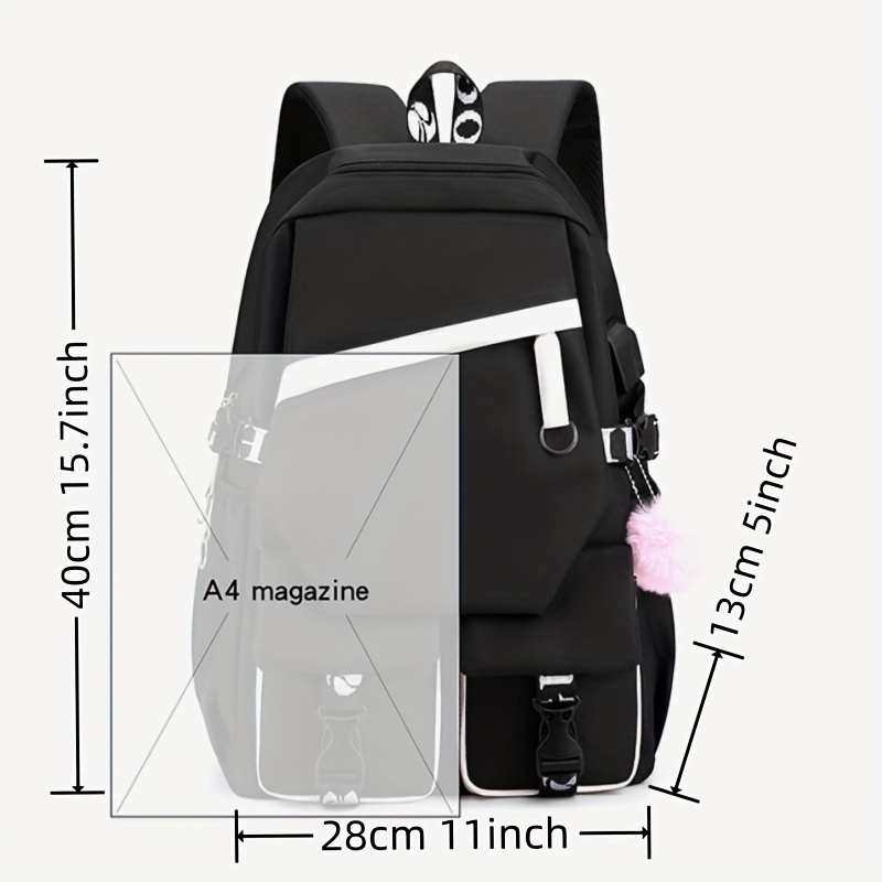 Kuromi Pattern Backpack, Kawaii Stylish School Bag, Women’s Colorblock Rucksack