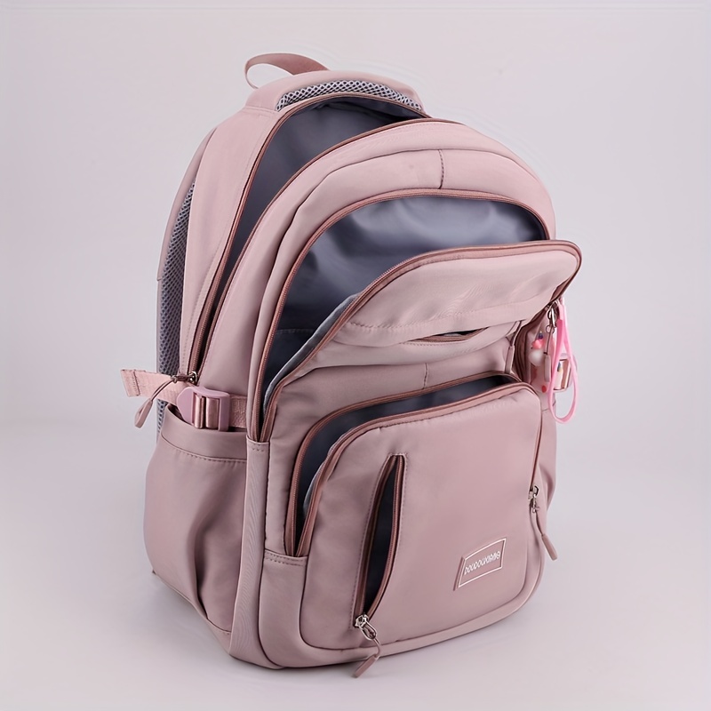 Large Capacity Multi-pocket Student Backpack, Solid Color Lightweight Spine Protection Student Schoolbag, Nylon Multi-layer Backpack, Waterproof Laptop Backpack, Send Pendant