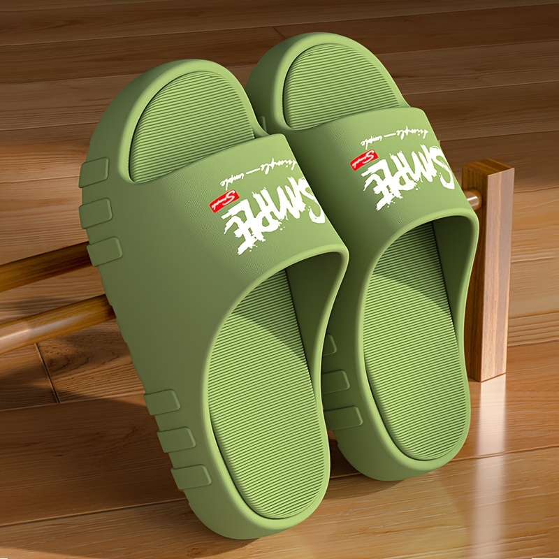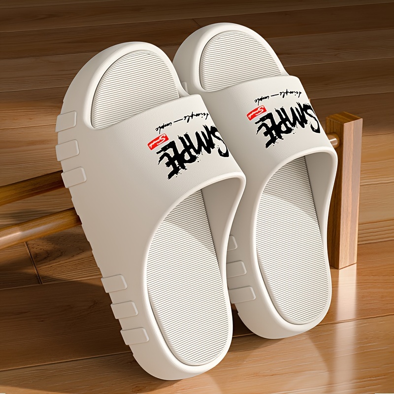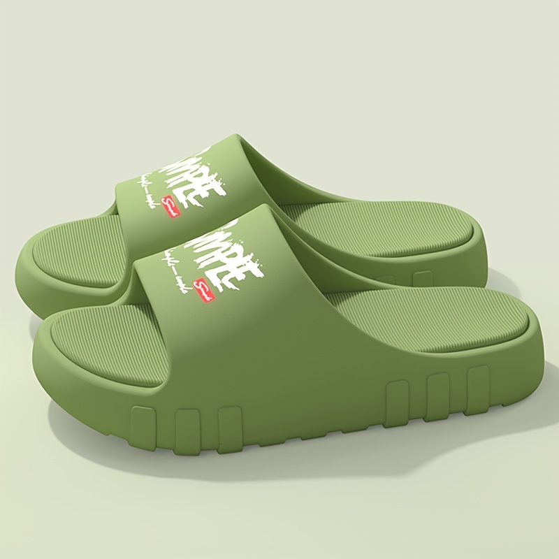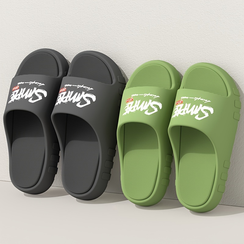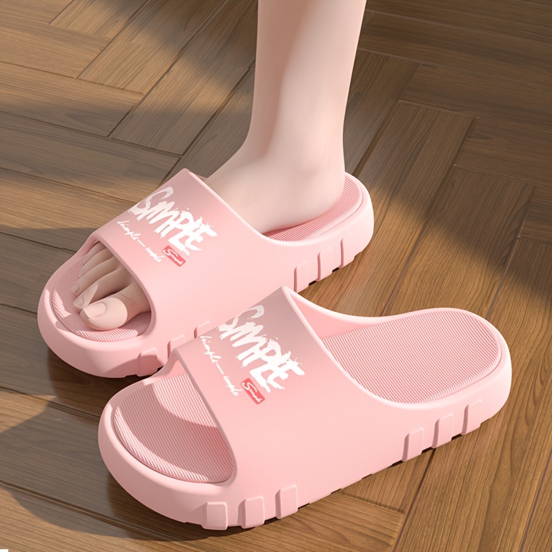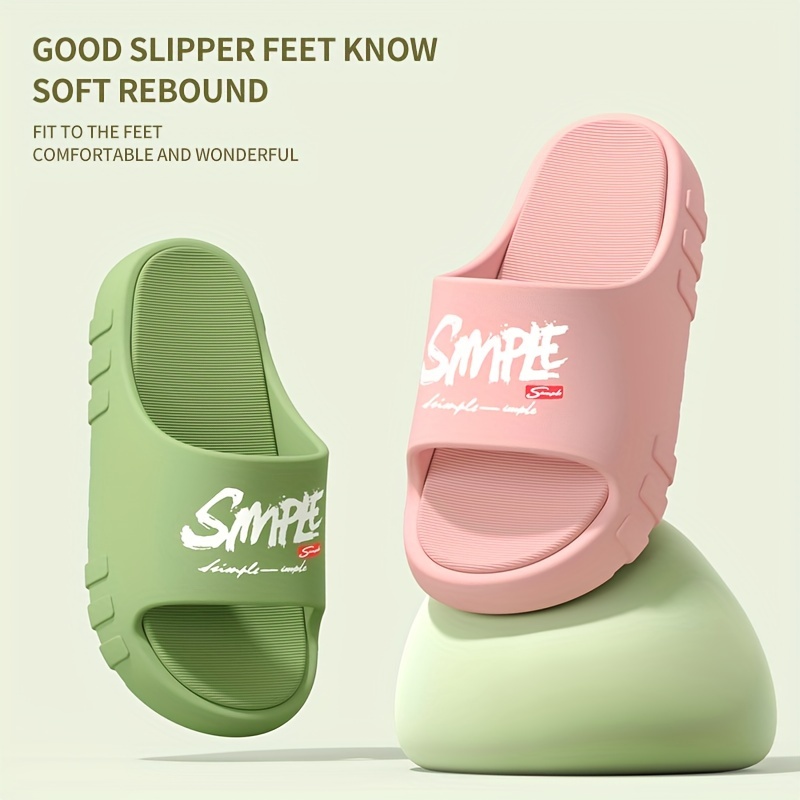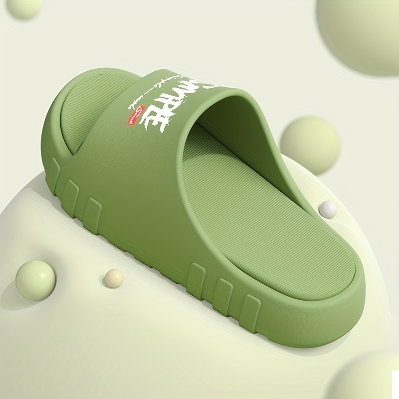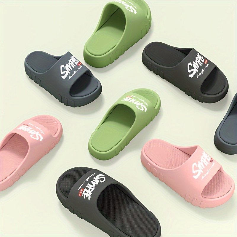 Letter Print EVA Pillow Slides, Lightweight Soft Sole Comfort Home Shower Slides, Non-slip Beach Slides
