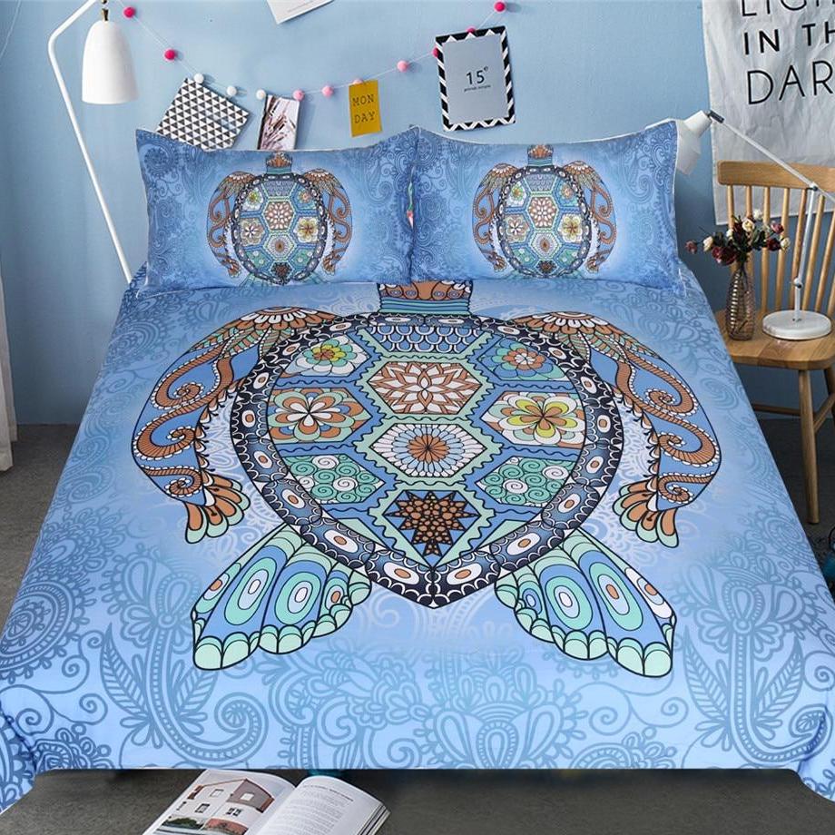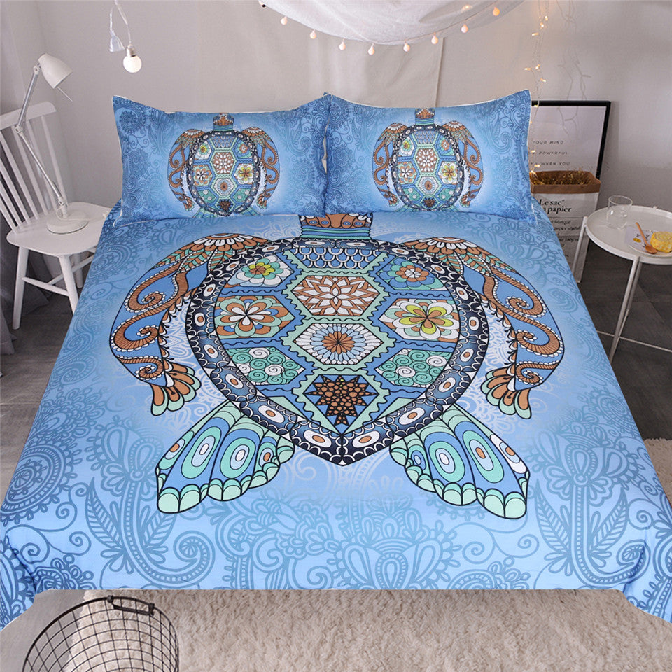 Light Blue 3-Piece Mandala Sea Turtle Duvet Cover Set