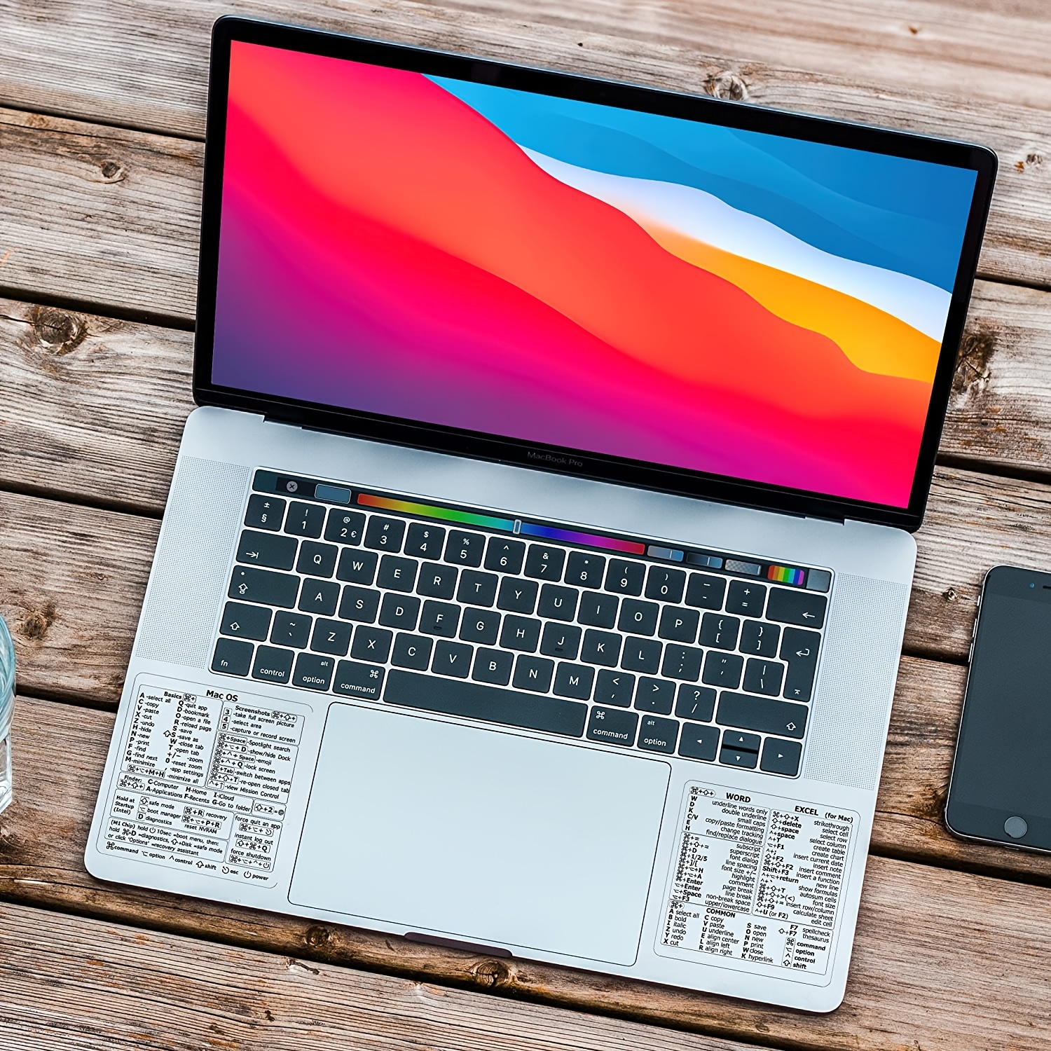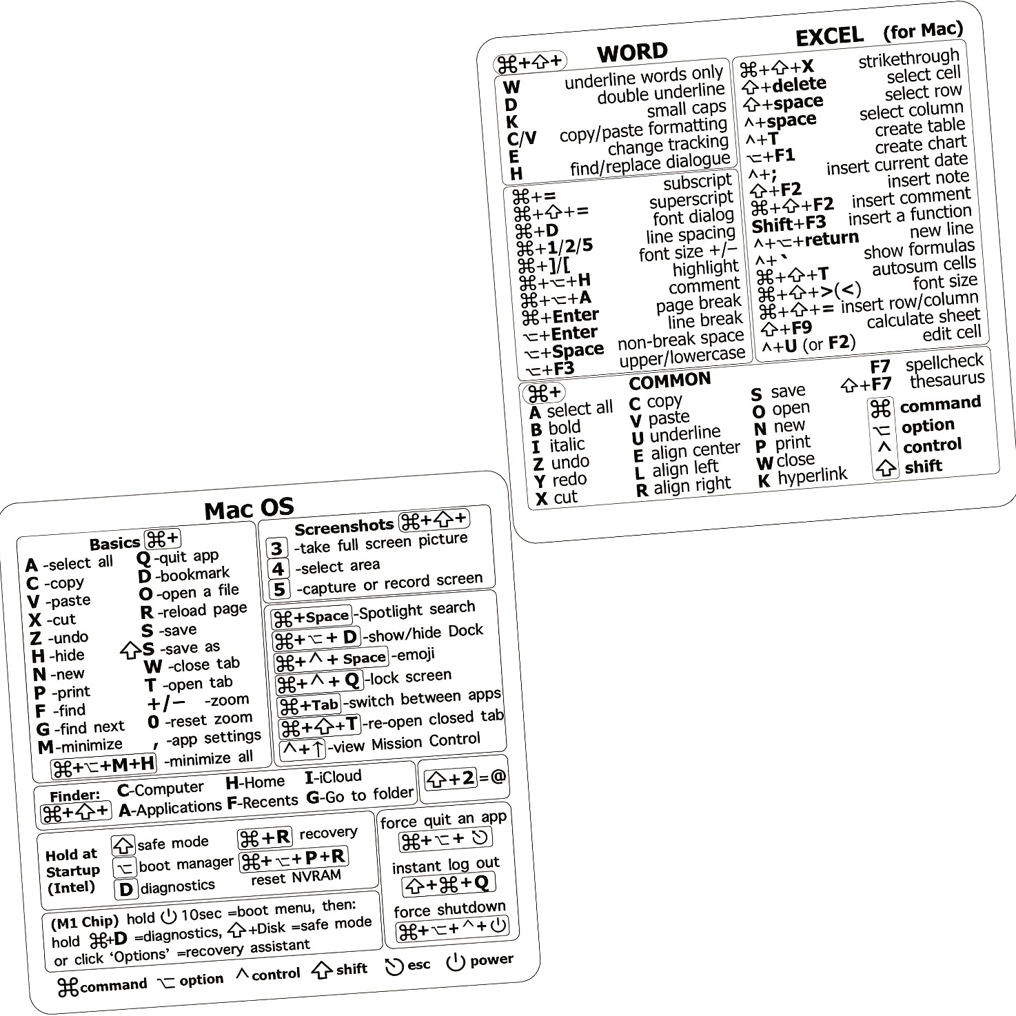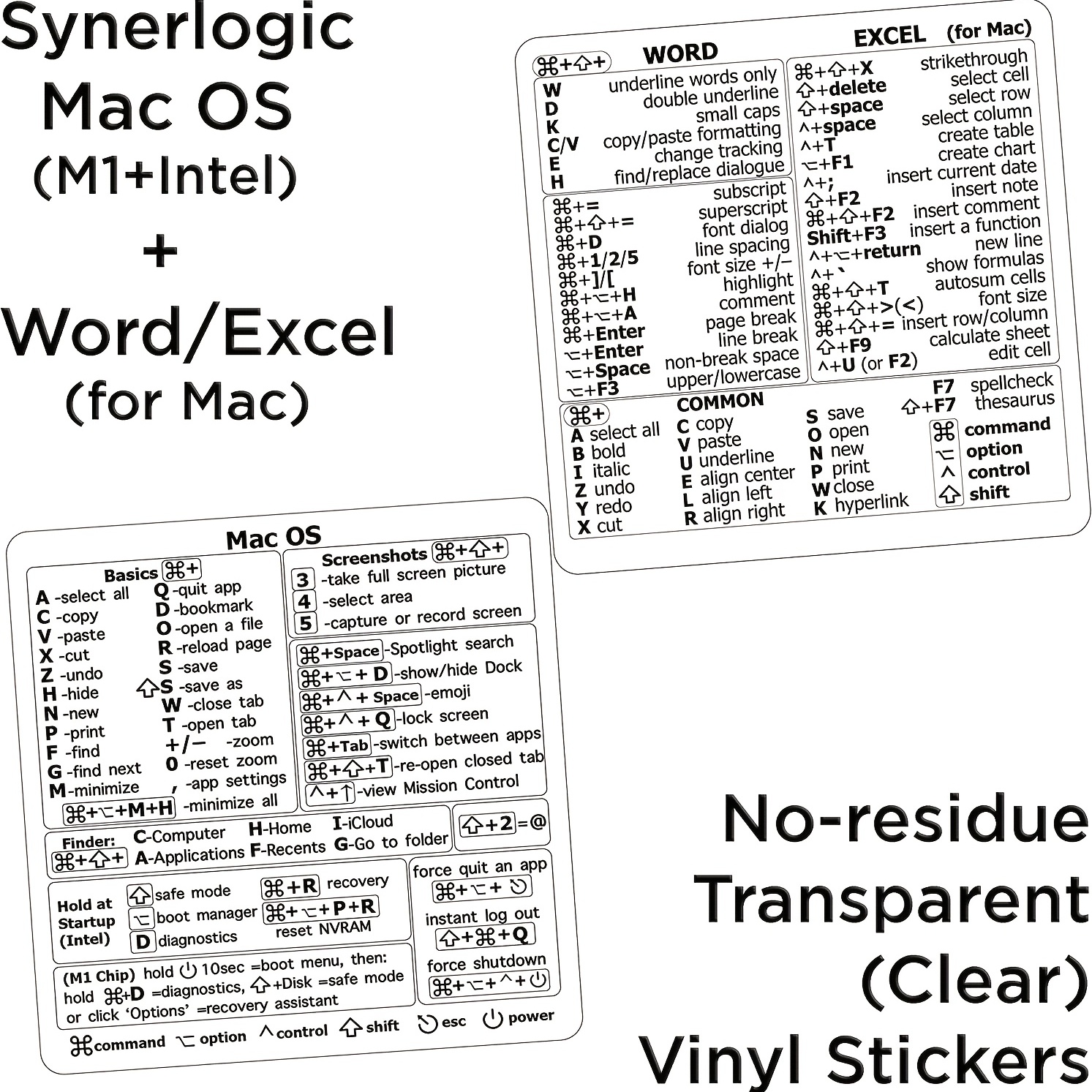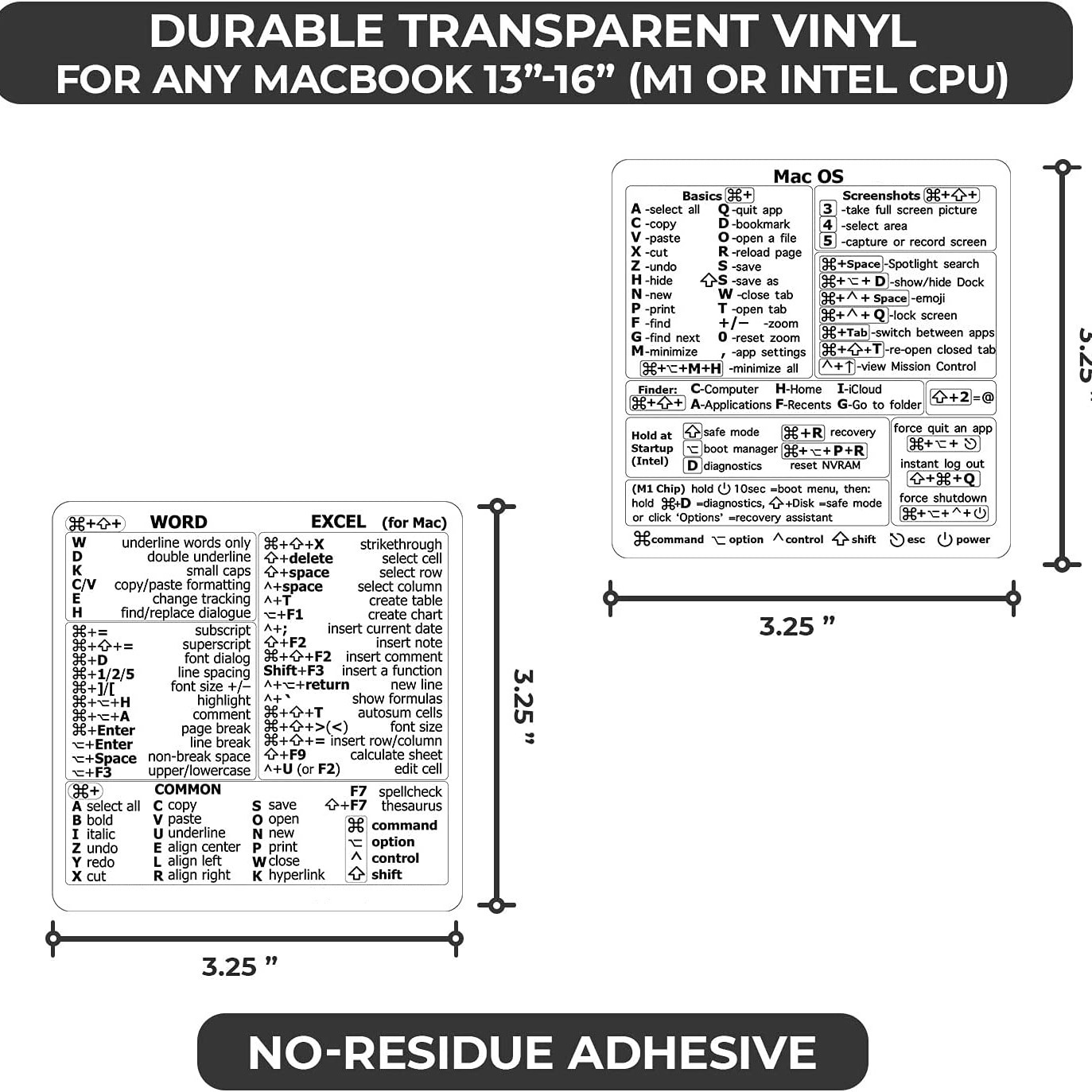 Mac OS (M/Intel) + Word/Excel (for Mac) Quick Reference Keyboard Shortcut Stickers – for MacBook Air/Pro/iMac/Mac/Mini (Clear, 1 Set)