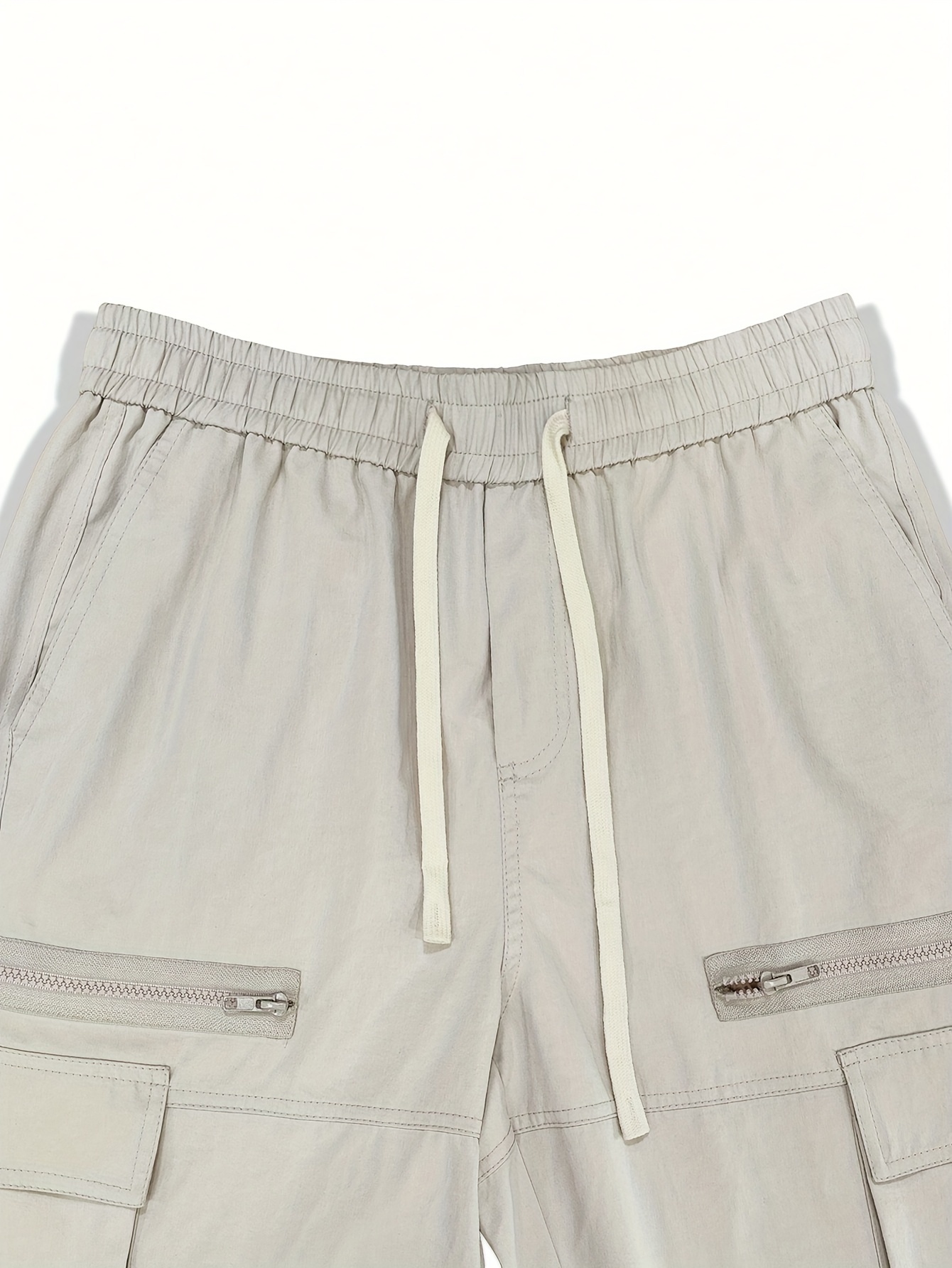 Men’s Zipper Pockets Active Shorts, Casual Waist Drawstring Quick Drying Shorts, Running, Sports, Fitness Quarters