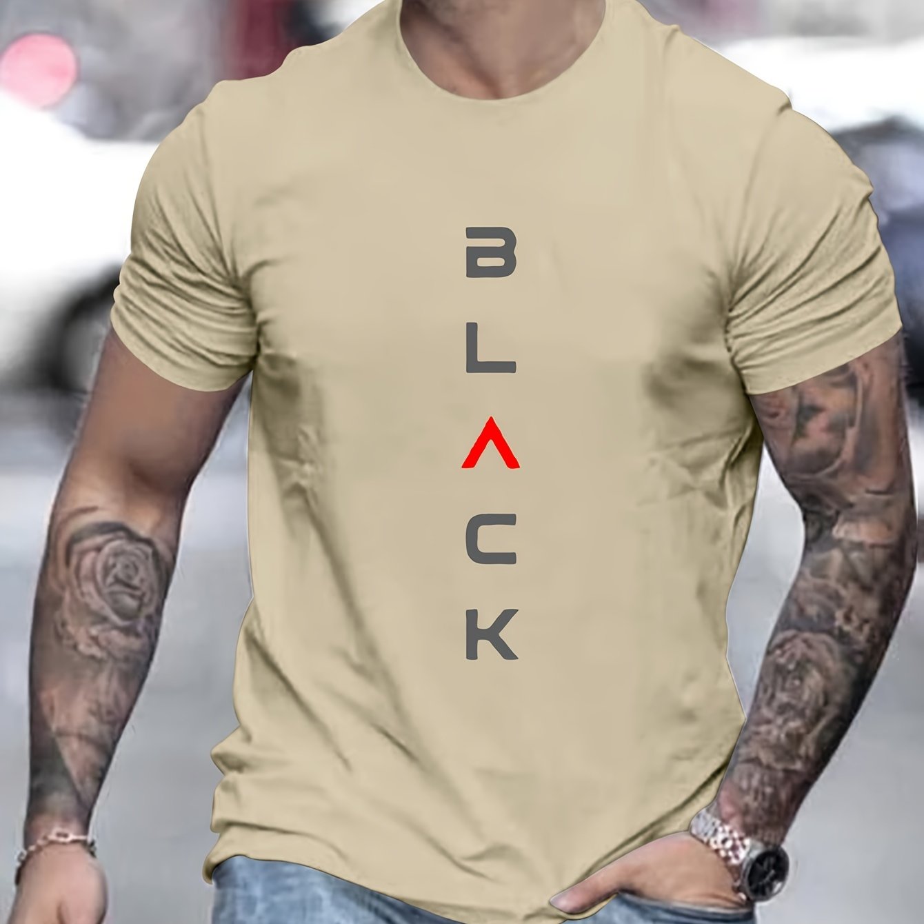 Letter RESPECT Pattern Print Men’s T-shirt, Graphic Tee Men’s Summer Clothes, Men’s Outfits