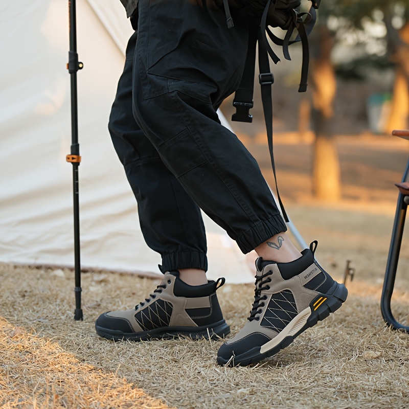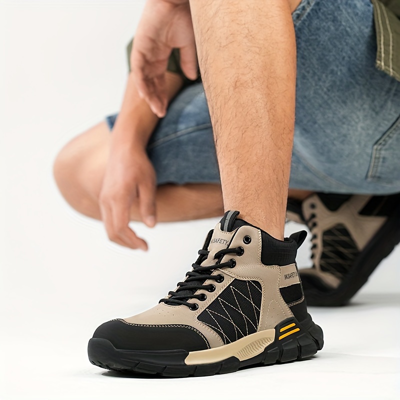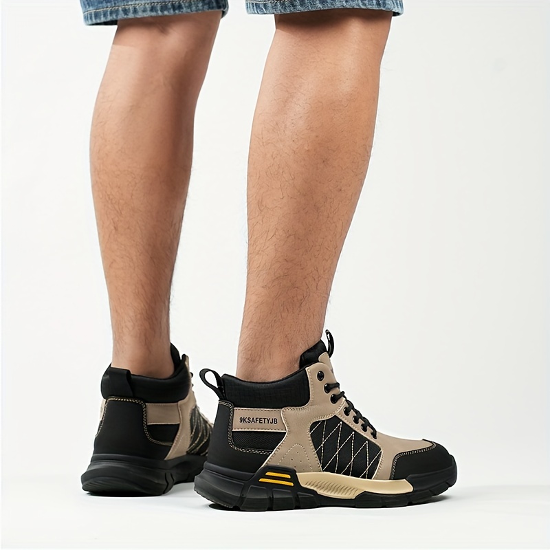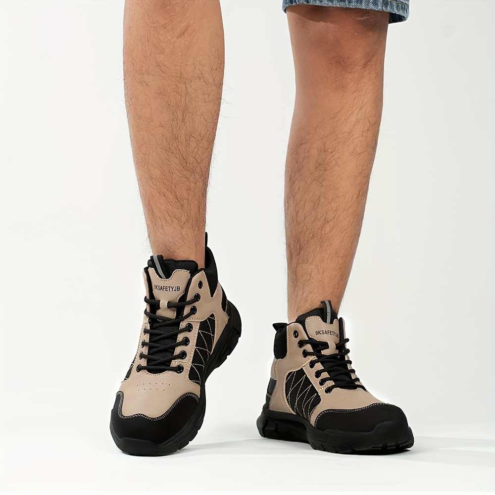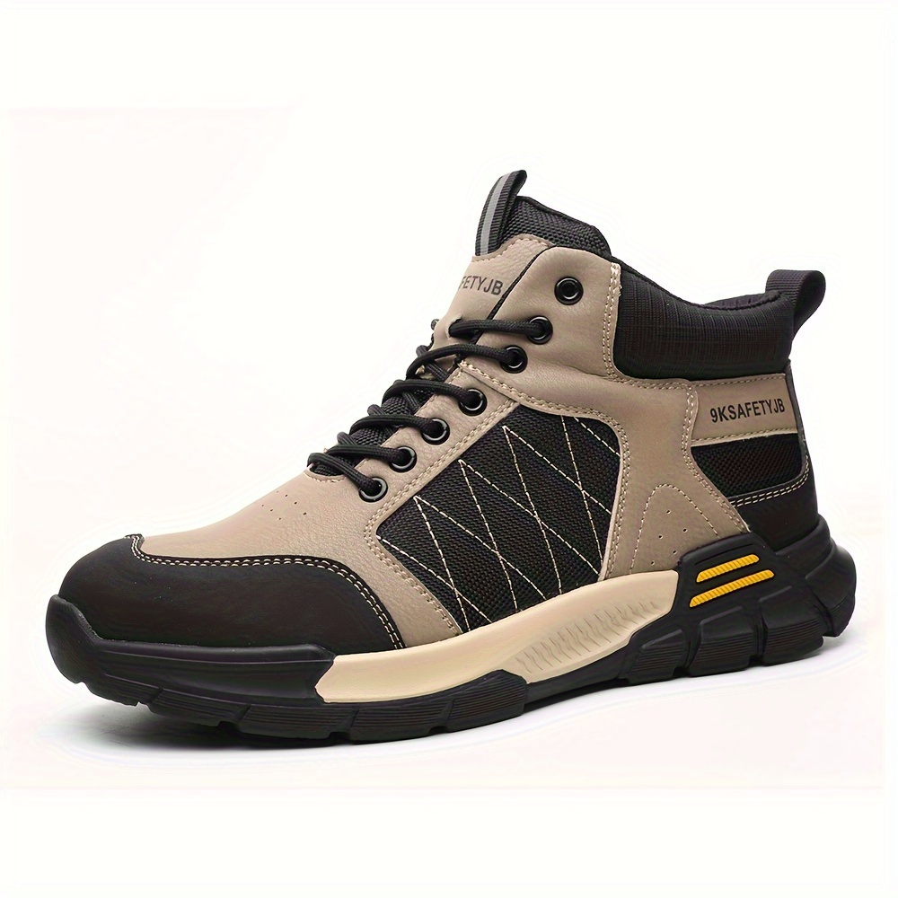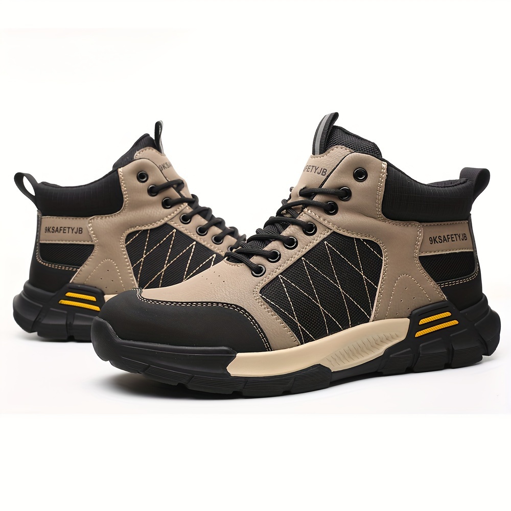 Men’s High Top Steel Toe Puncture Proof Anti-skid Work Safety Boots, Lace Up Durable Industrial Construction Shoes