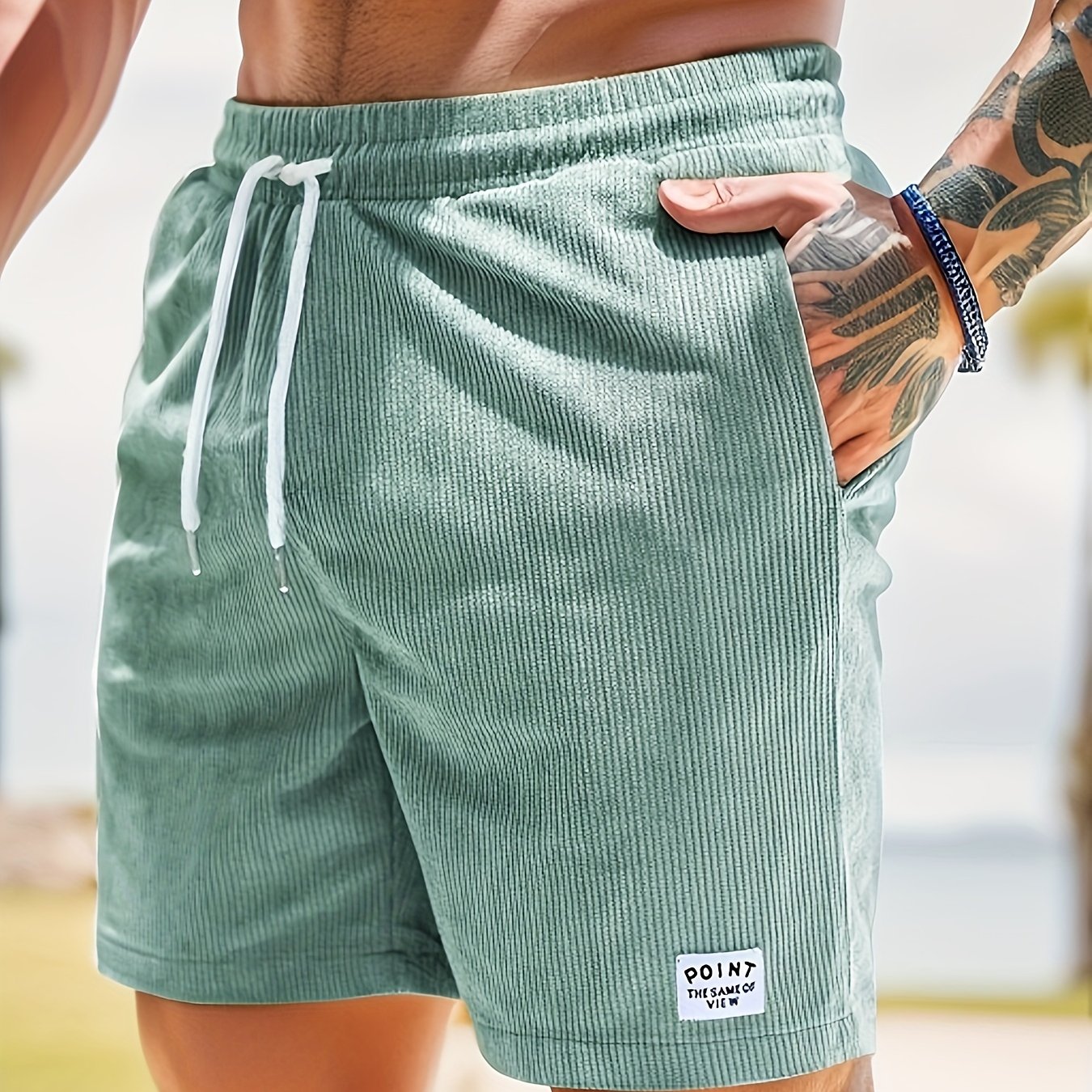 Men’s Label Patchwork Regular Fit Solid Shorts With Drawstring And Pockets, Casual And Chic Shorts For Summer Beach And Daily Leisurewear
