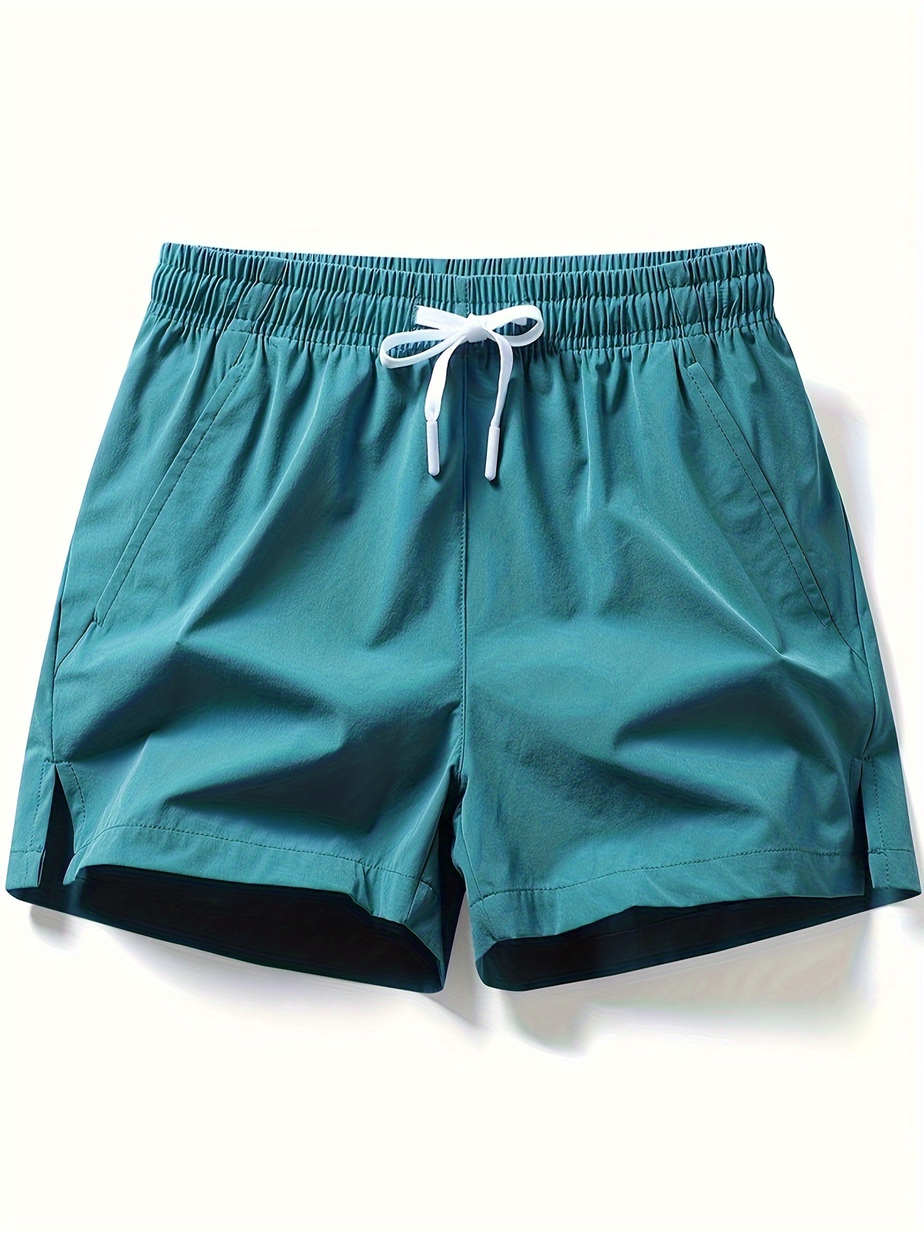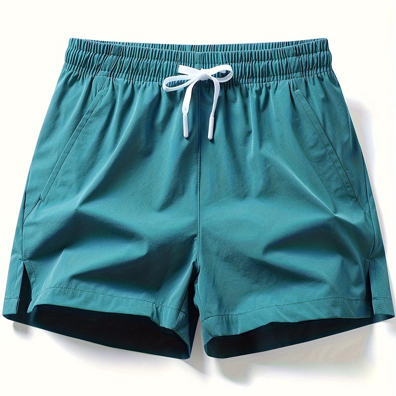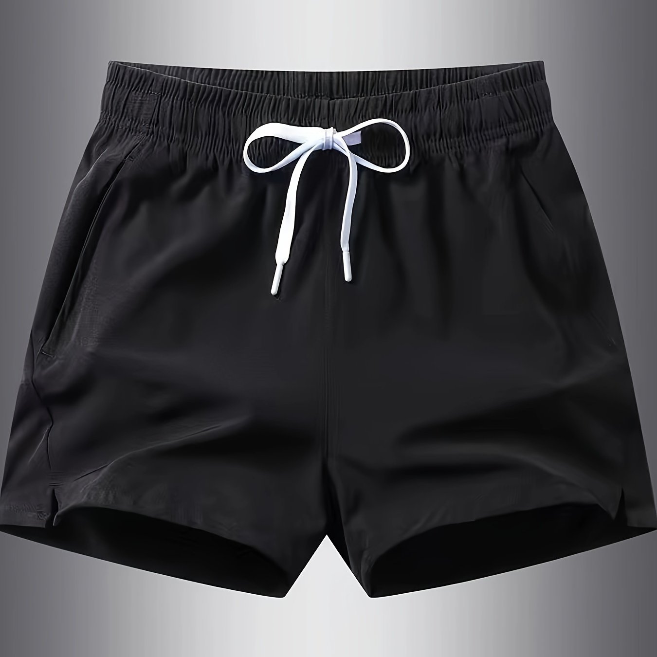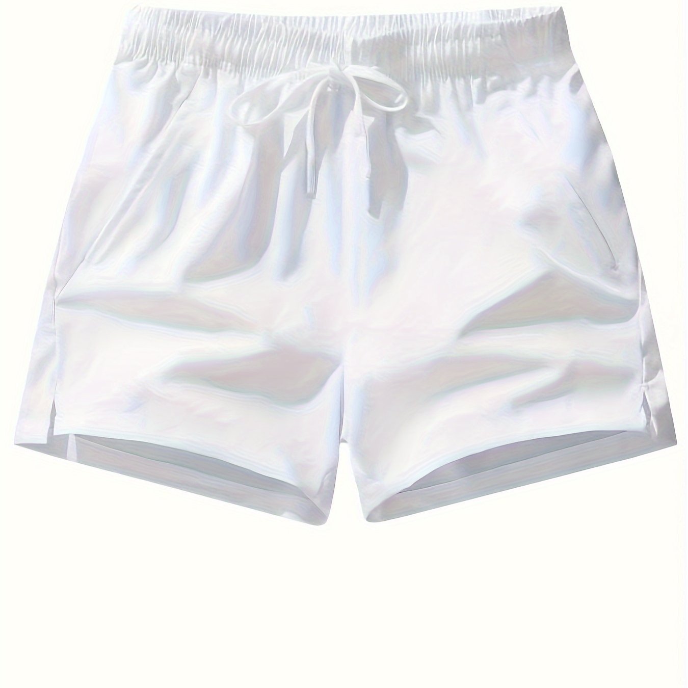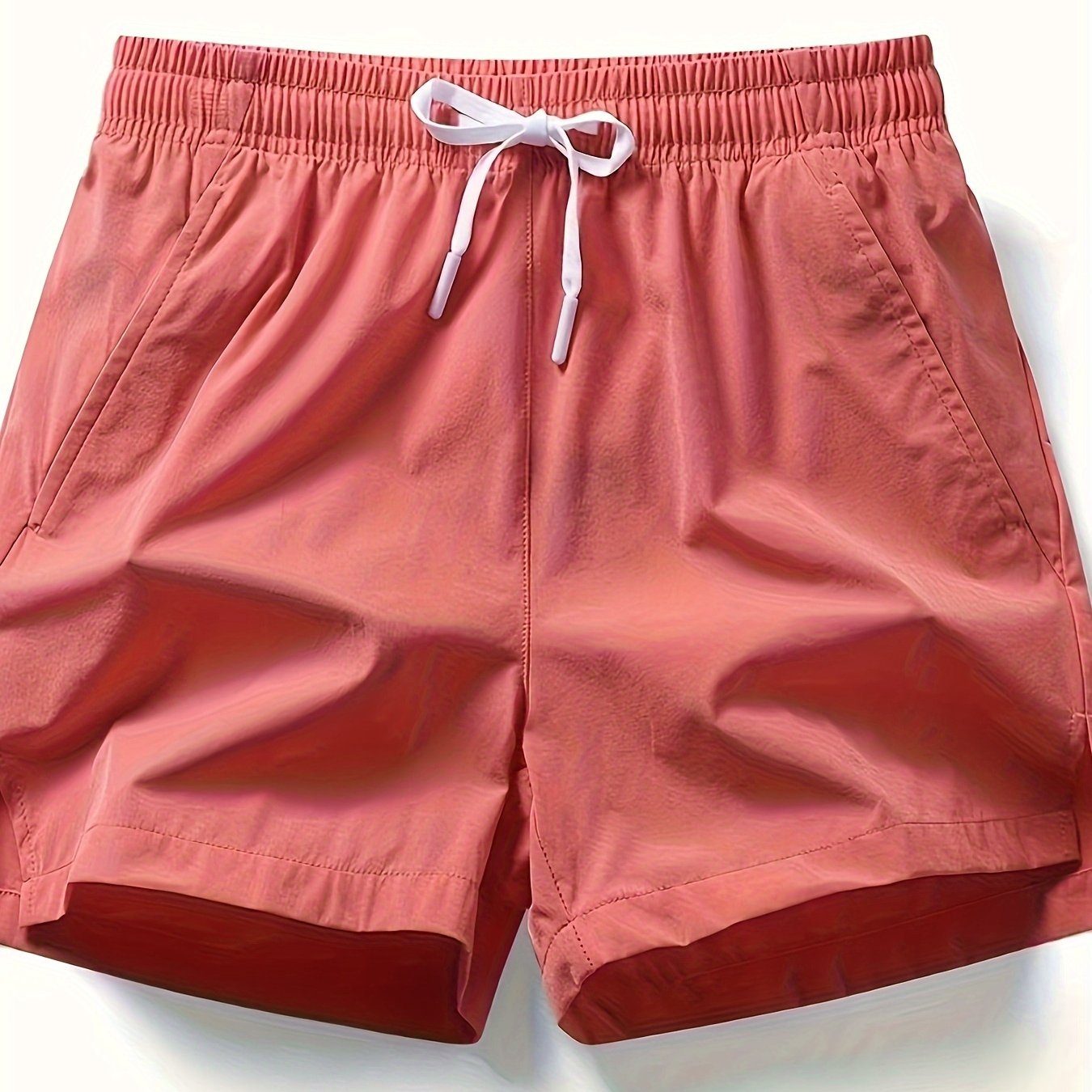 Men’s Solid Drawstring Casual Shorts With Pockets, Summer Sports, Summer Daily, Gym, Running