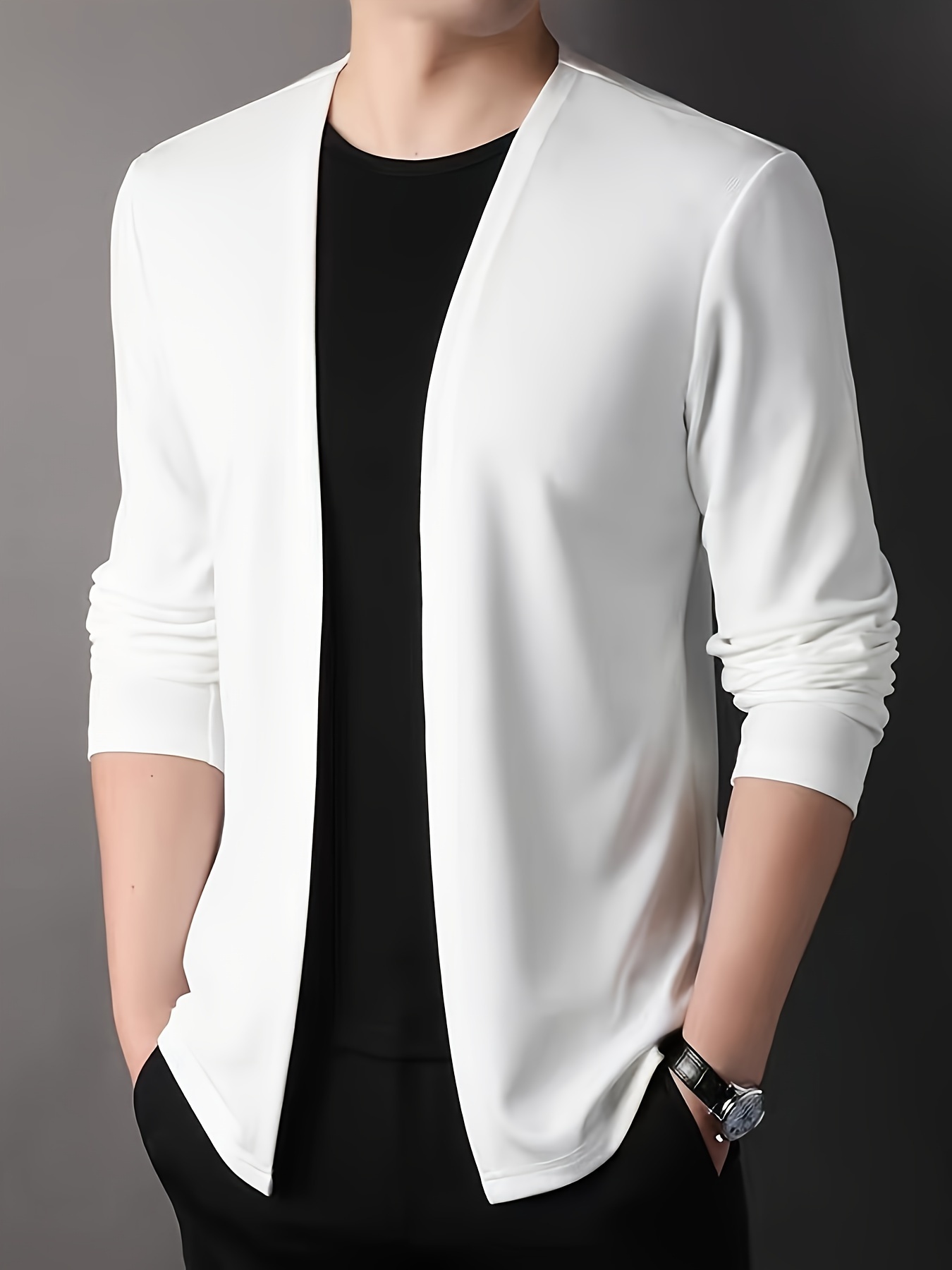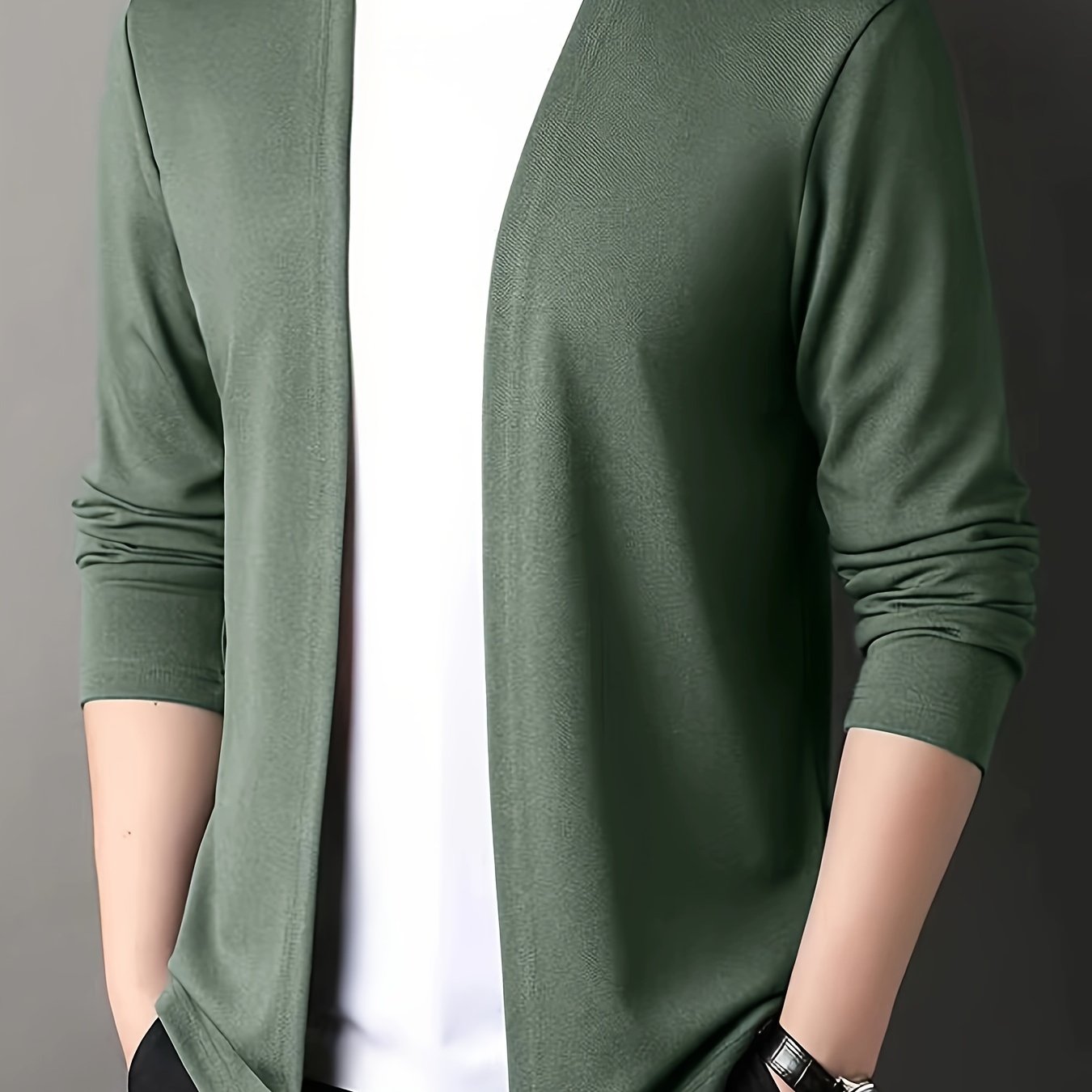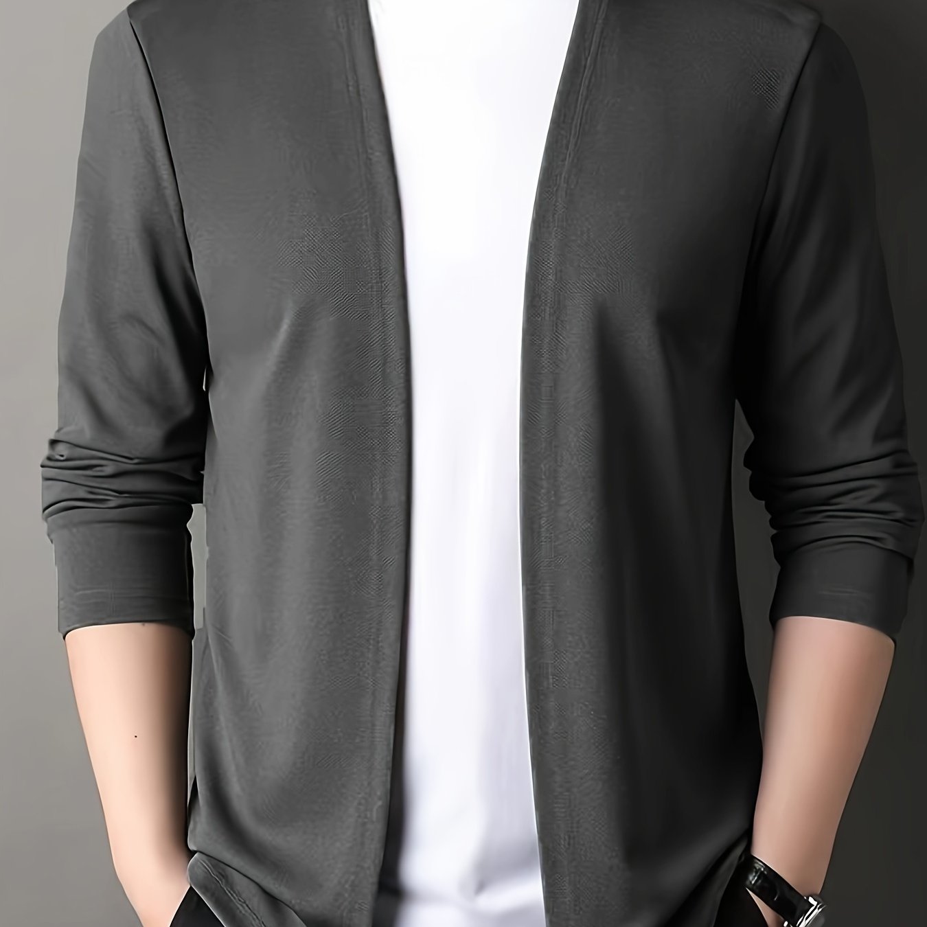 Men’s Solid Knitted Cardigan, Casual Breathable Long Sleeve Slim-fit Open Front Sweater For Outdoor Activities