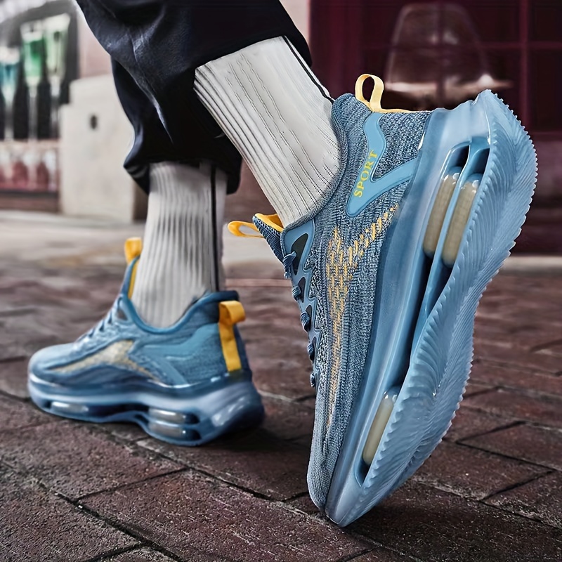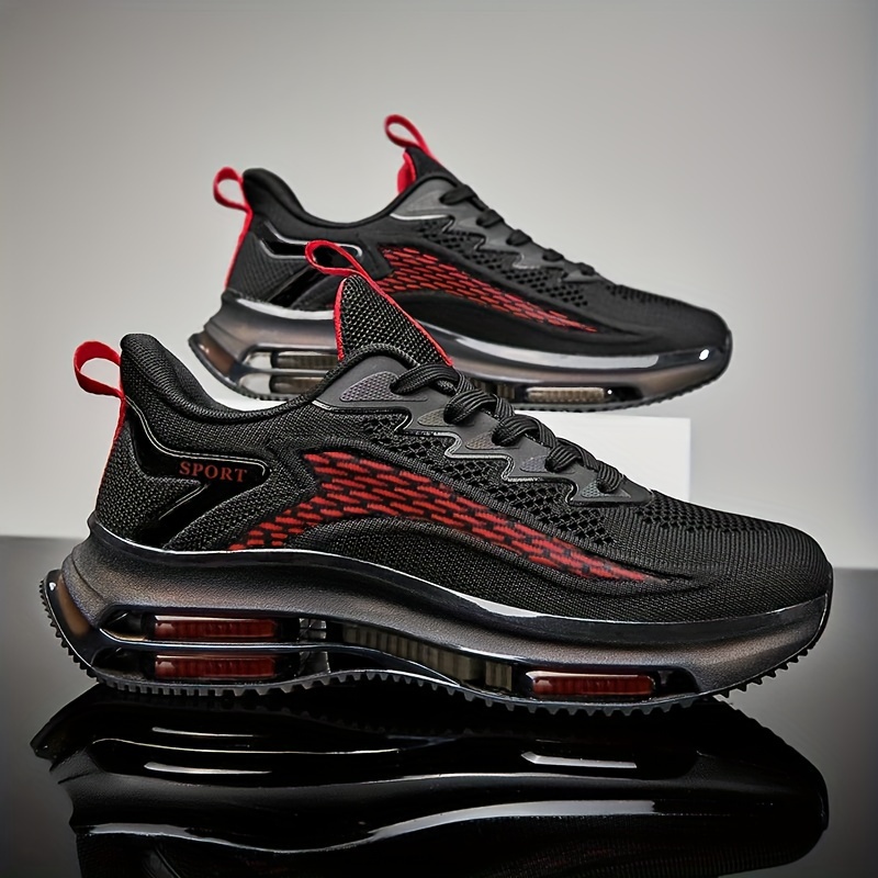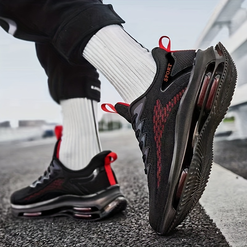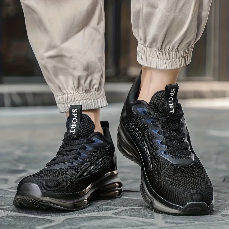 Men’s Trendy Woven Knit Breathable Running Shoes With Air Cushion, Comfy Non Slip Durable Sneakers For Men’s Outdoor Activities