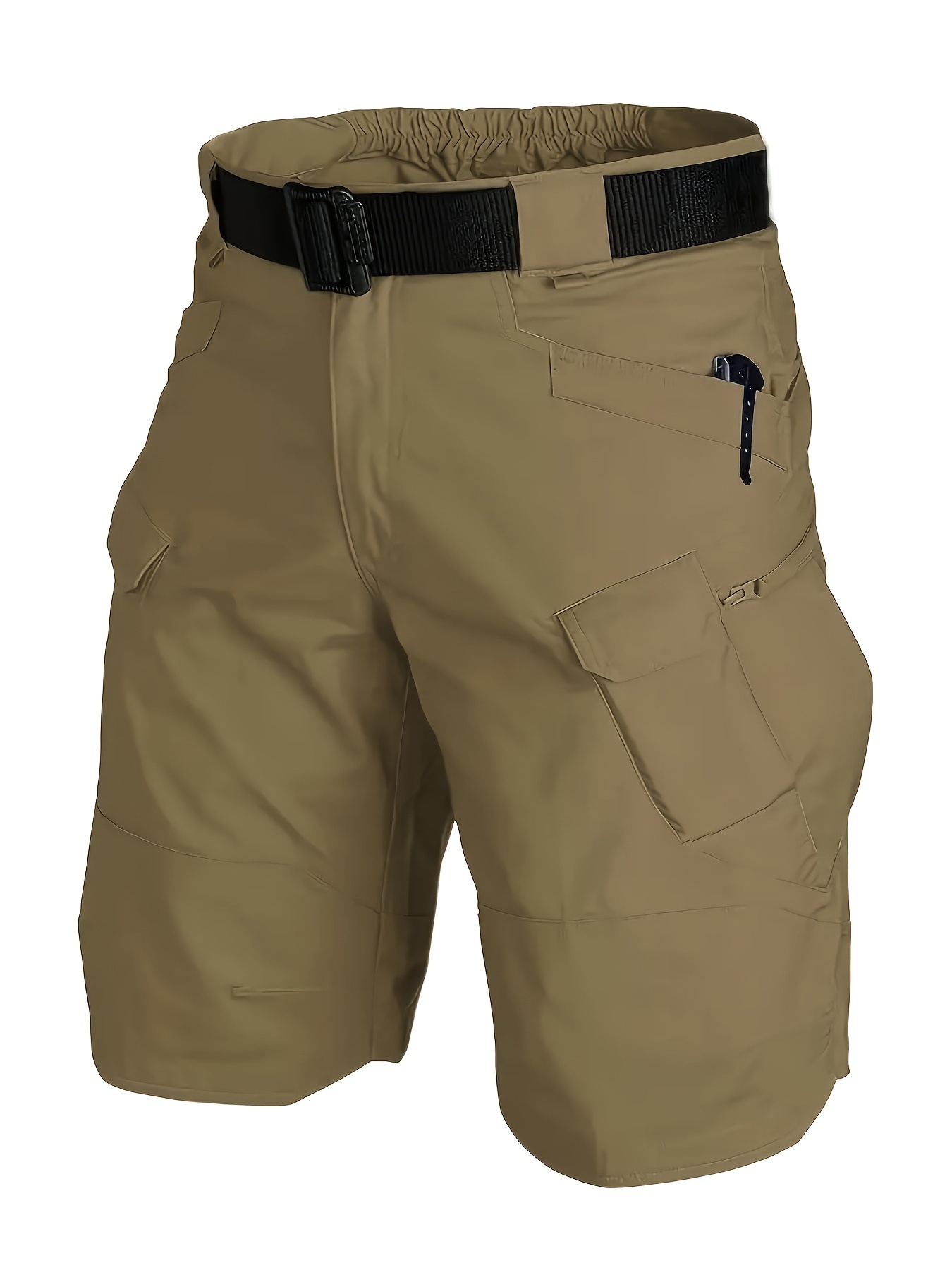 Men’s Urban Shorts Outdoor Waterproof Wear Resistant Cargo Shorts Quick Dry Multi Pocket Hiking Pants Without Belt