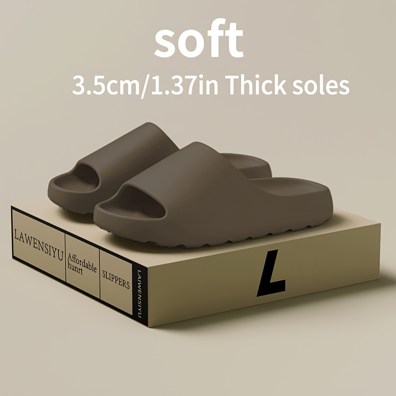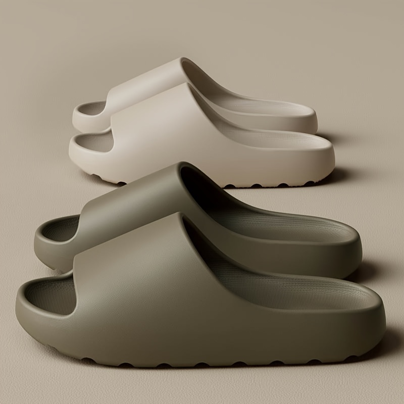 Minimalist Solid Color Pillow Slides, Slip On Lightweight Soft Sole Home Shower Slides, Unisex Non-slip Summer Beach Slides