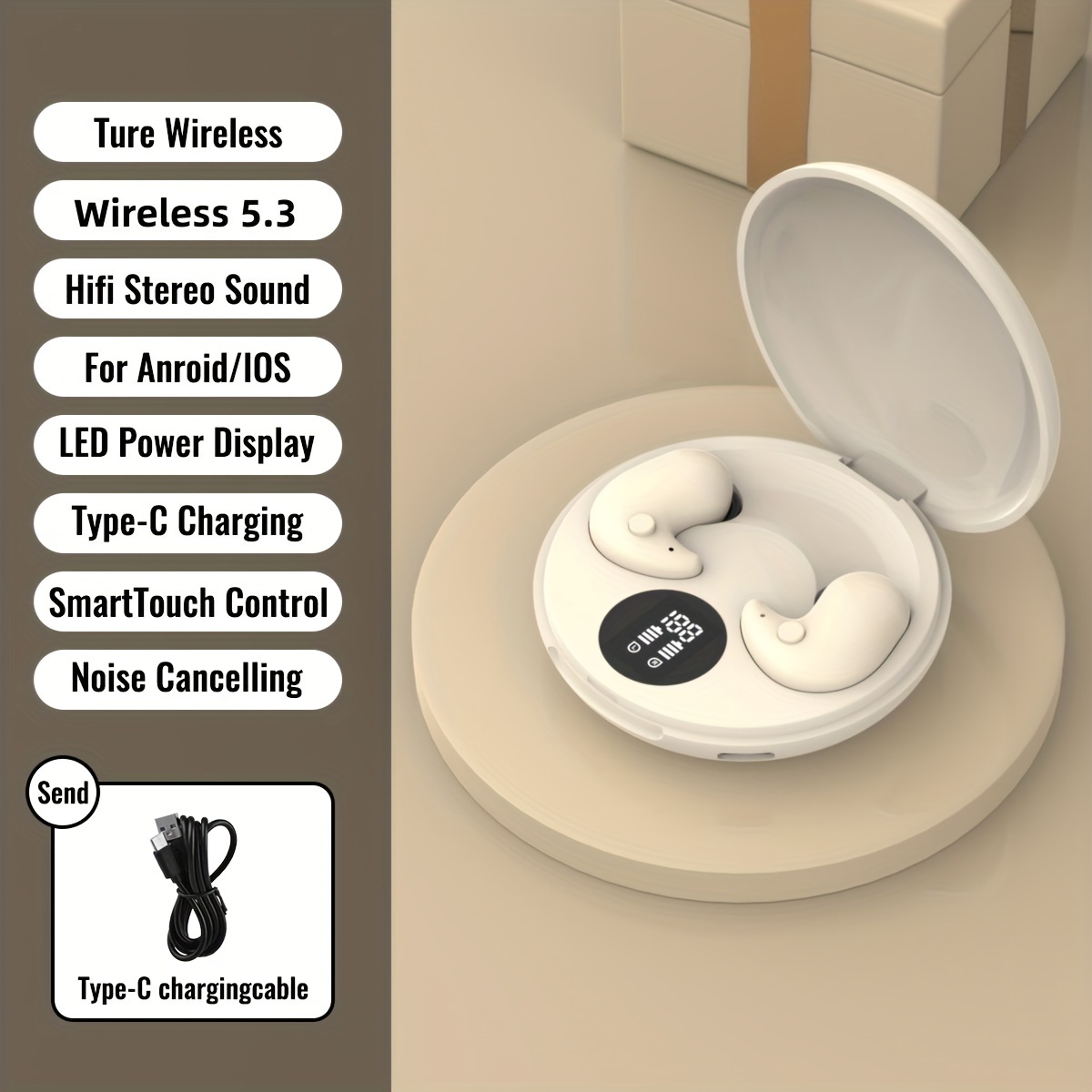 New concept ultra-thin sleep wireless earphones, High definition HiFi sound quality, Apple Android phones can use sleep headphones, Painless wearing, Noise reducing sleep earphones, LED high-definition digital display screen, Slim Wireless headphones