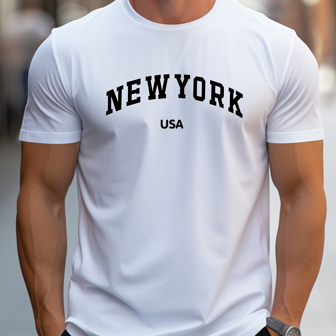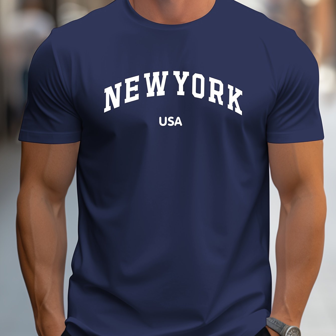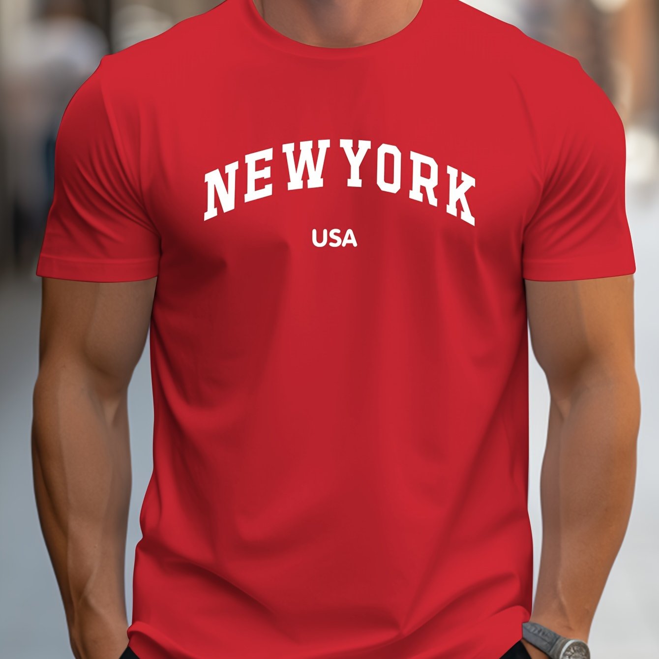 “NEW YORK USA” Print, Men’s Novel Design T-shirt, Casual Comfy Tees For Summer, Men’s Clothing Tops For Daily Activities