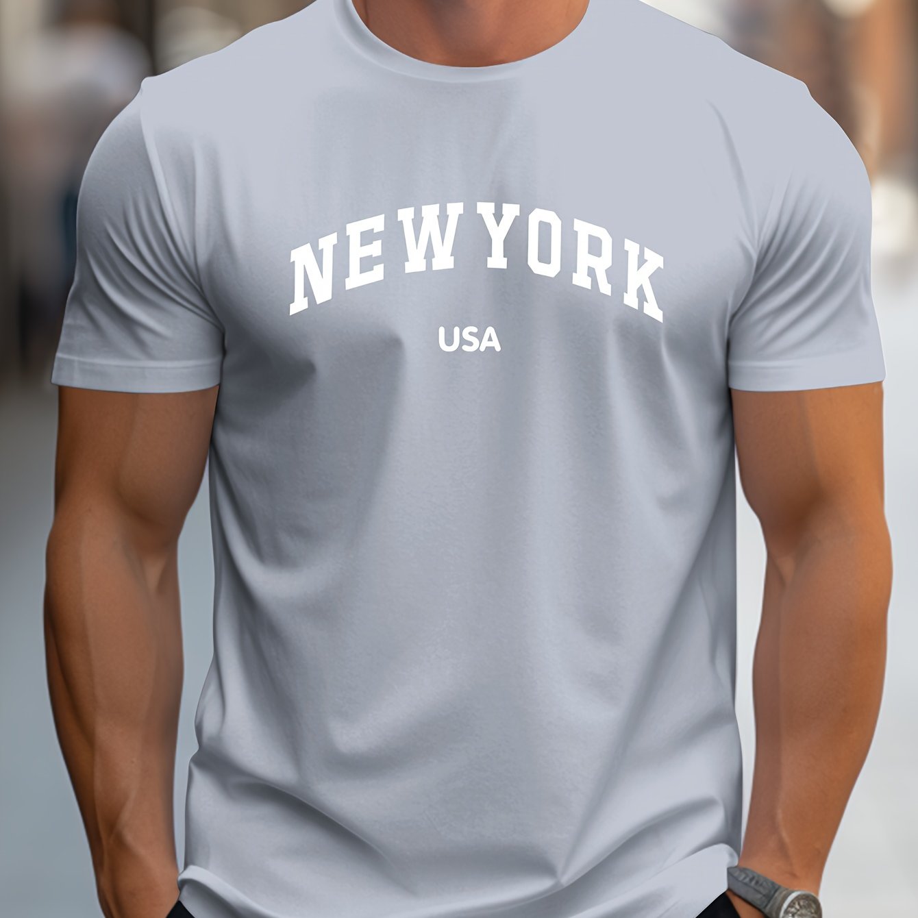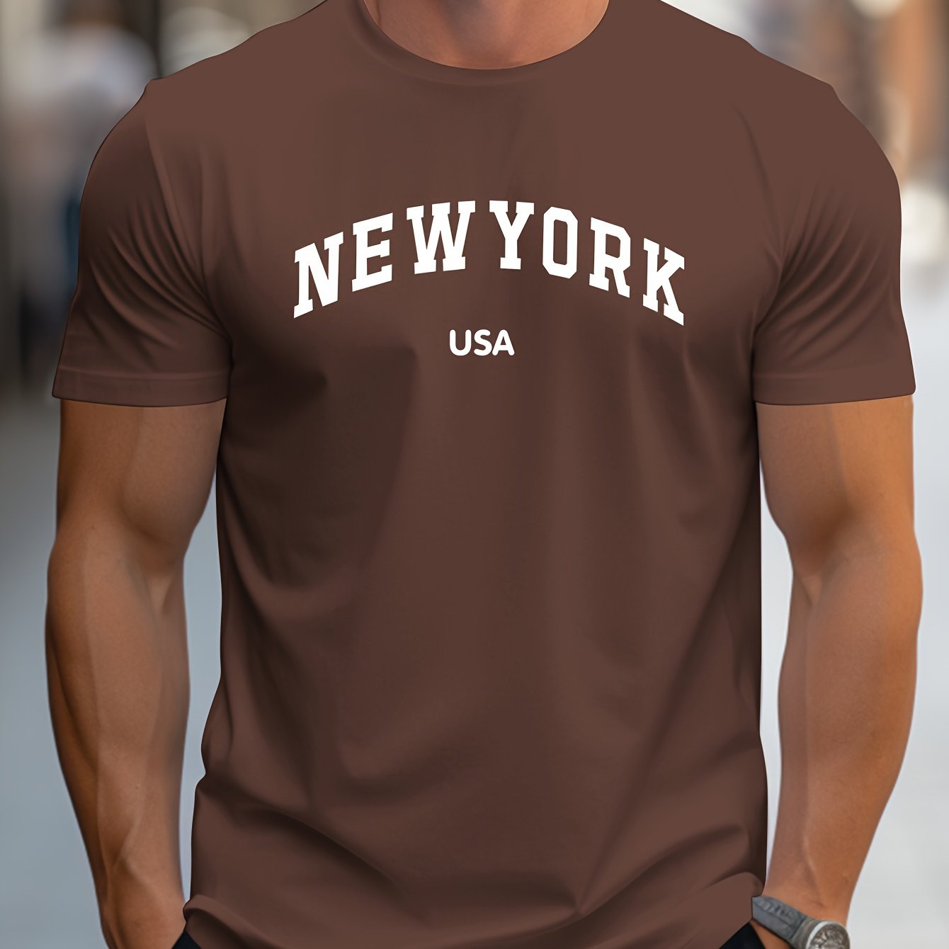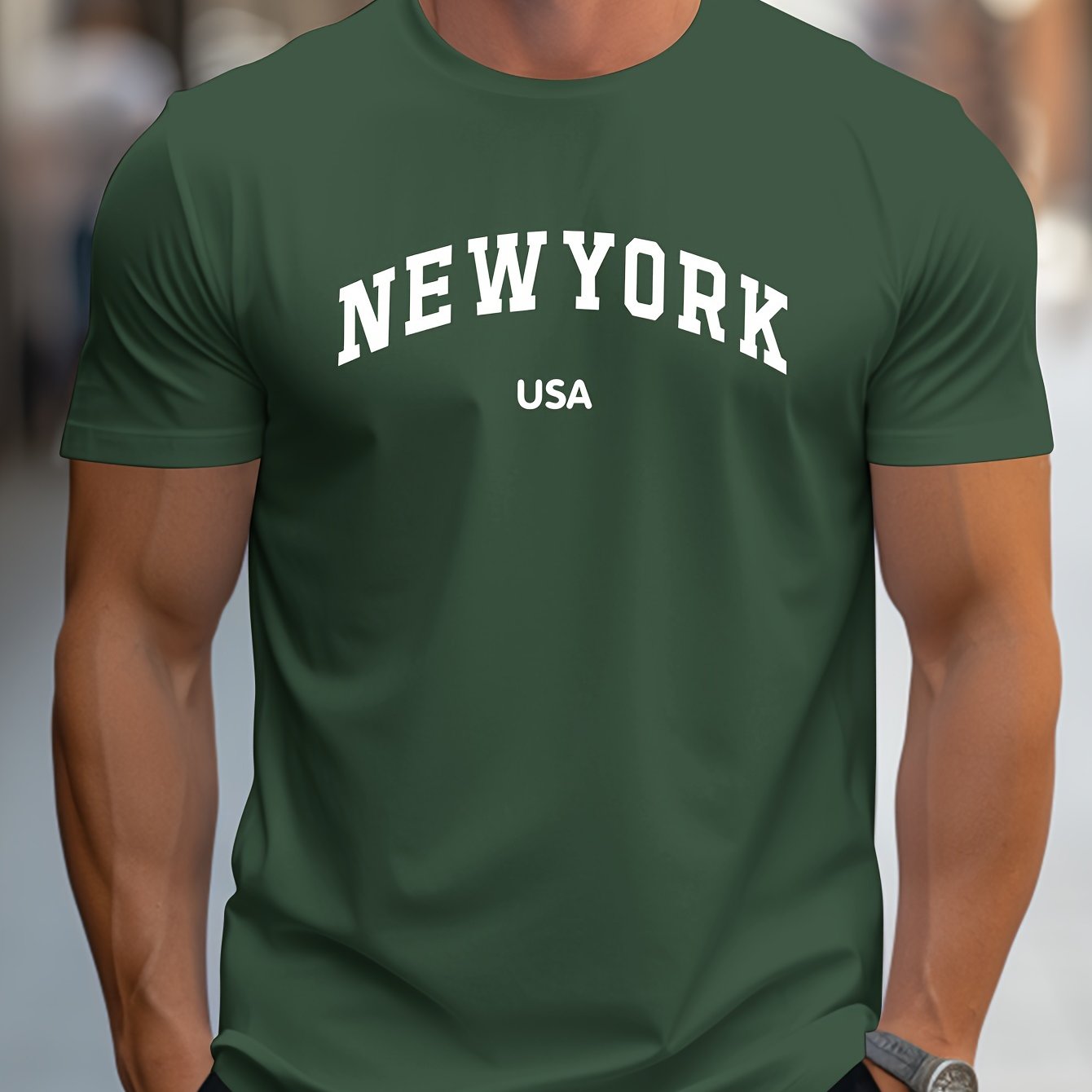 “NEW YORK USA” Print, Men’s Novel Design T-shirt, Casual Comfy Tees For Summer, Men’s Clothing Tops For Daily Activities