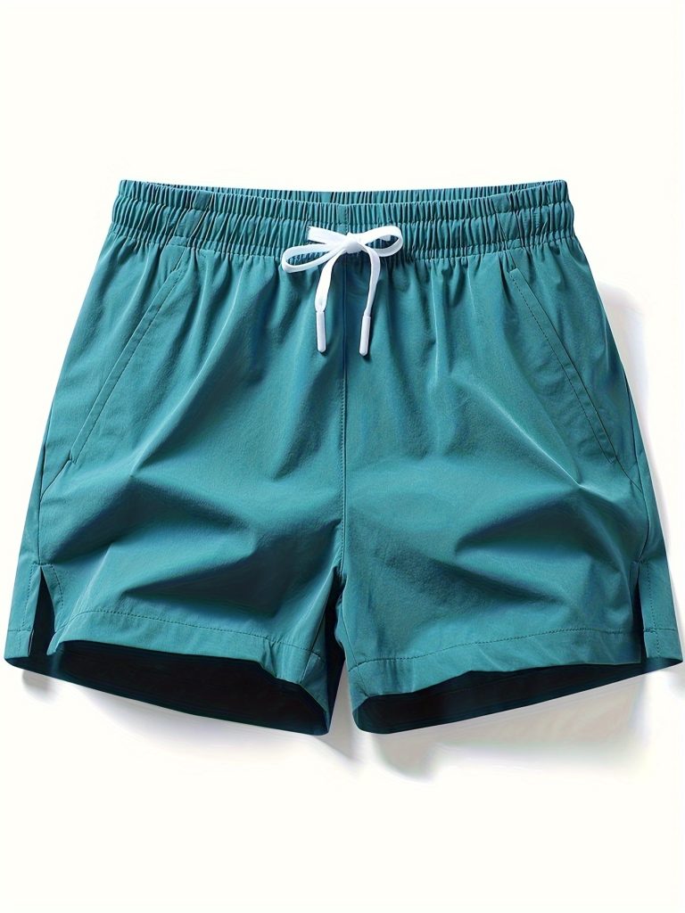 Men’s Solid Drawstring Casual Shorts With Pockets, Summer Sports, Summer Daily, Gym, Running