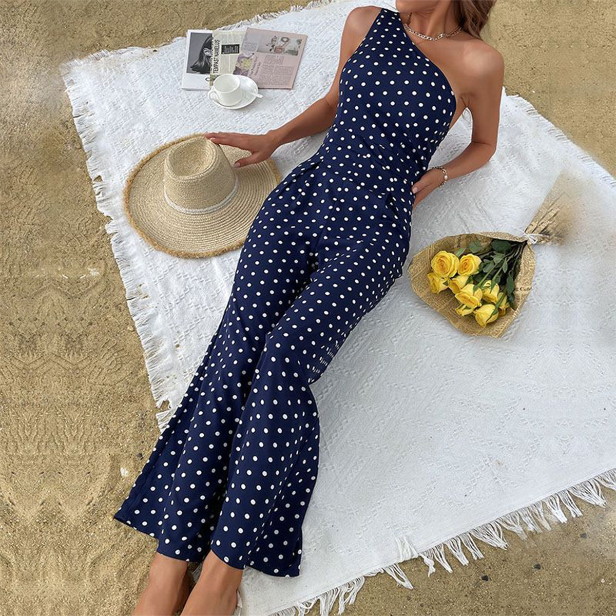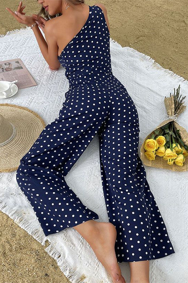 One Shoulder Dots Print Jumpsuit