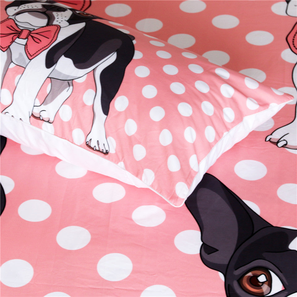 Pink 3-Piece Polka Dot Puppy Dog Duvet Cover Set