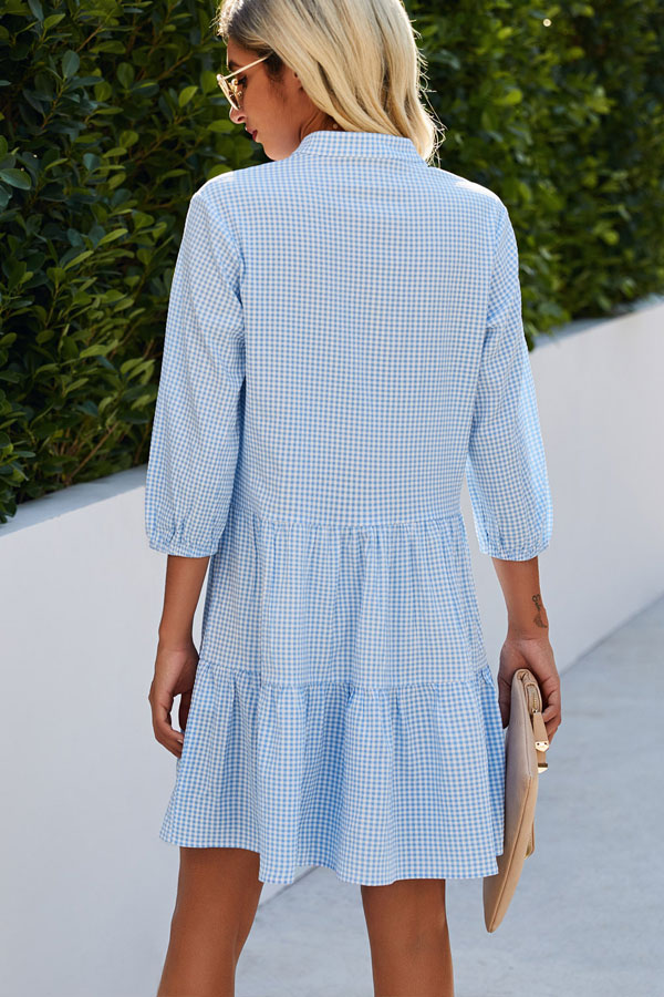 Plaid Print Button Up Split Neck Tunic Dress