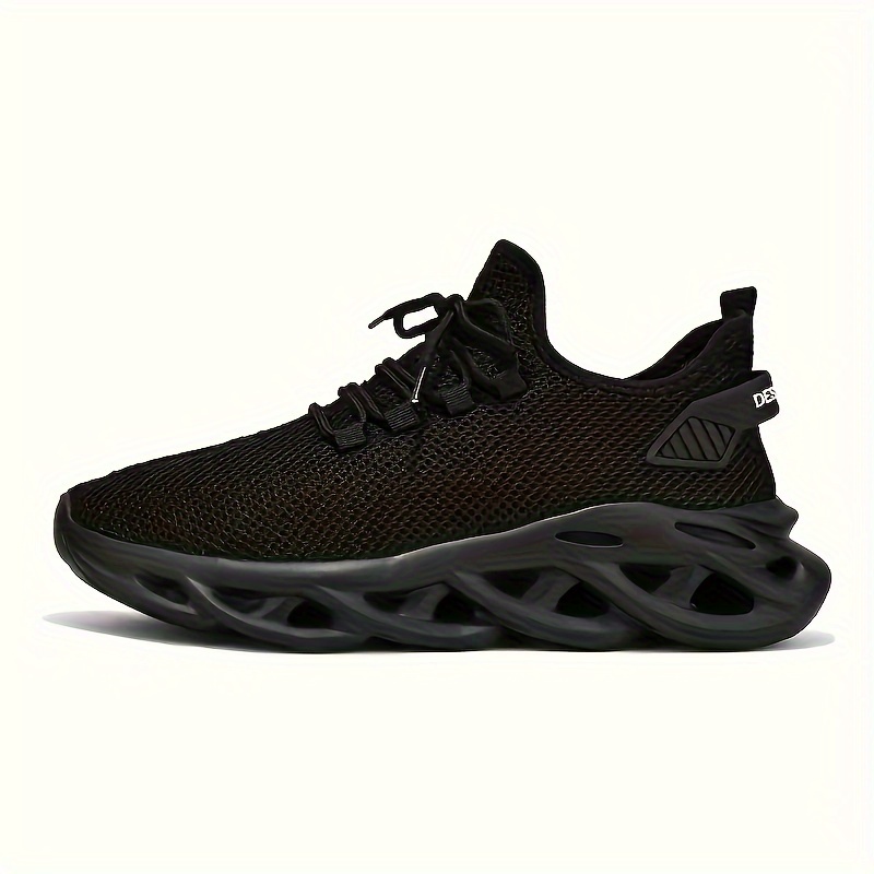 PLUS SIZE Men’s Trendy Woven Knit Breathable Blade Type Sneakers, Comfy Non Slip Lace Up Shoes For Men’s Outdoor Activities