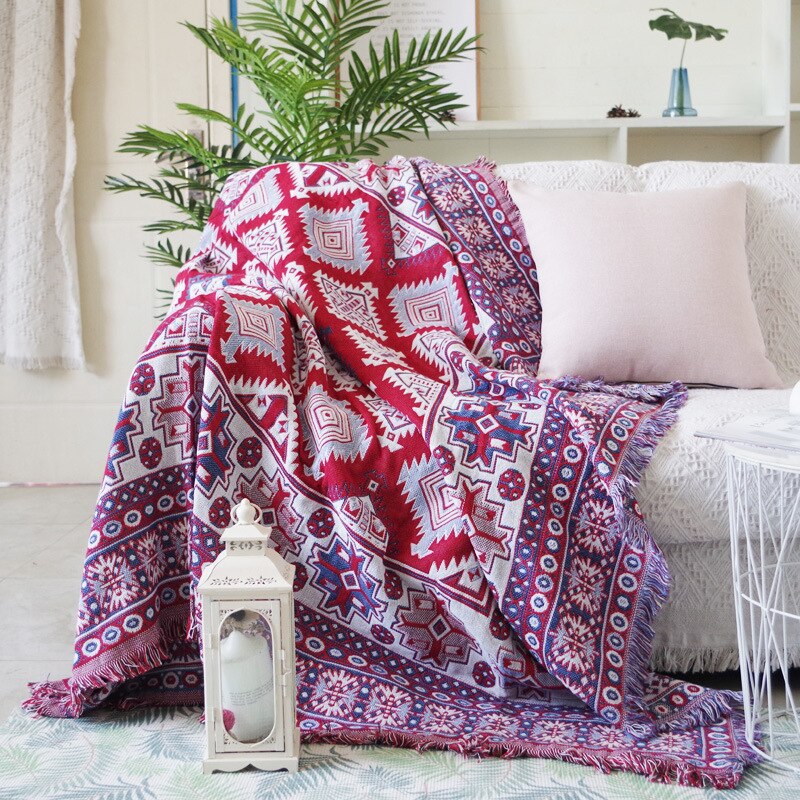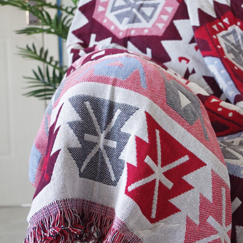 Red / Blue Knitted Nordic Sofa Throw Cover Blanket