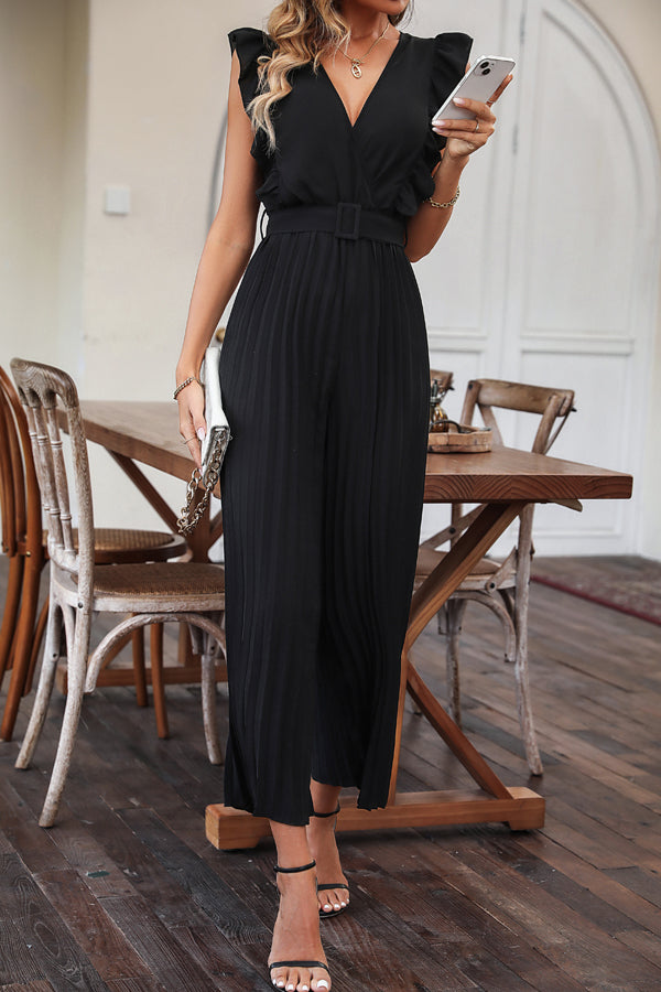 Ruffle Hem Solid Color V Neck Jumpsuit