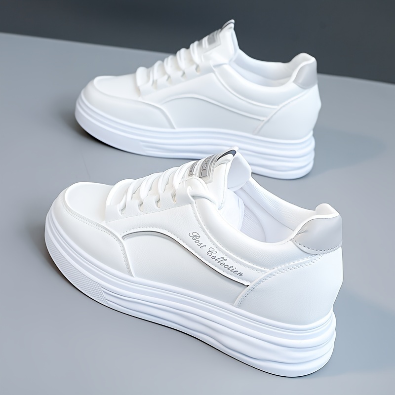 Women’s Casual Sneakers, Fashion All-match White Shoes, Thick Sole Lace-up Skate Shoes