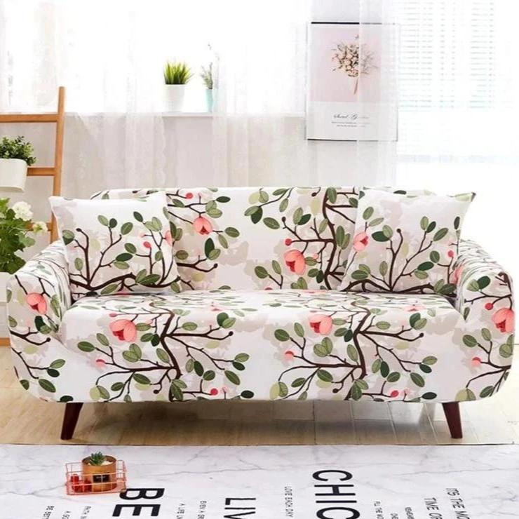 White Cherry Blossom Floral Print Sofa Cover Cover