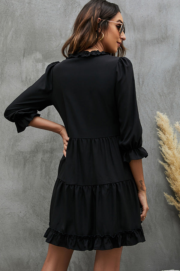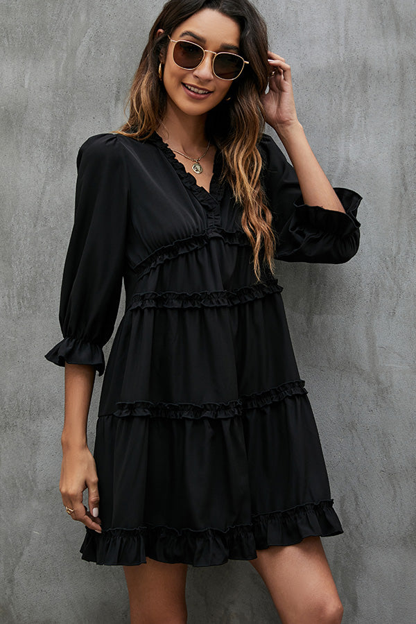 Be the first to review “Solid Black and Ruffled V Neck Mini Dress” Cancel reply