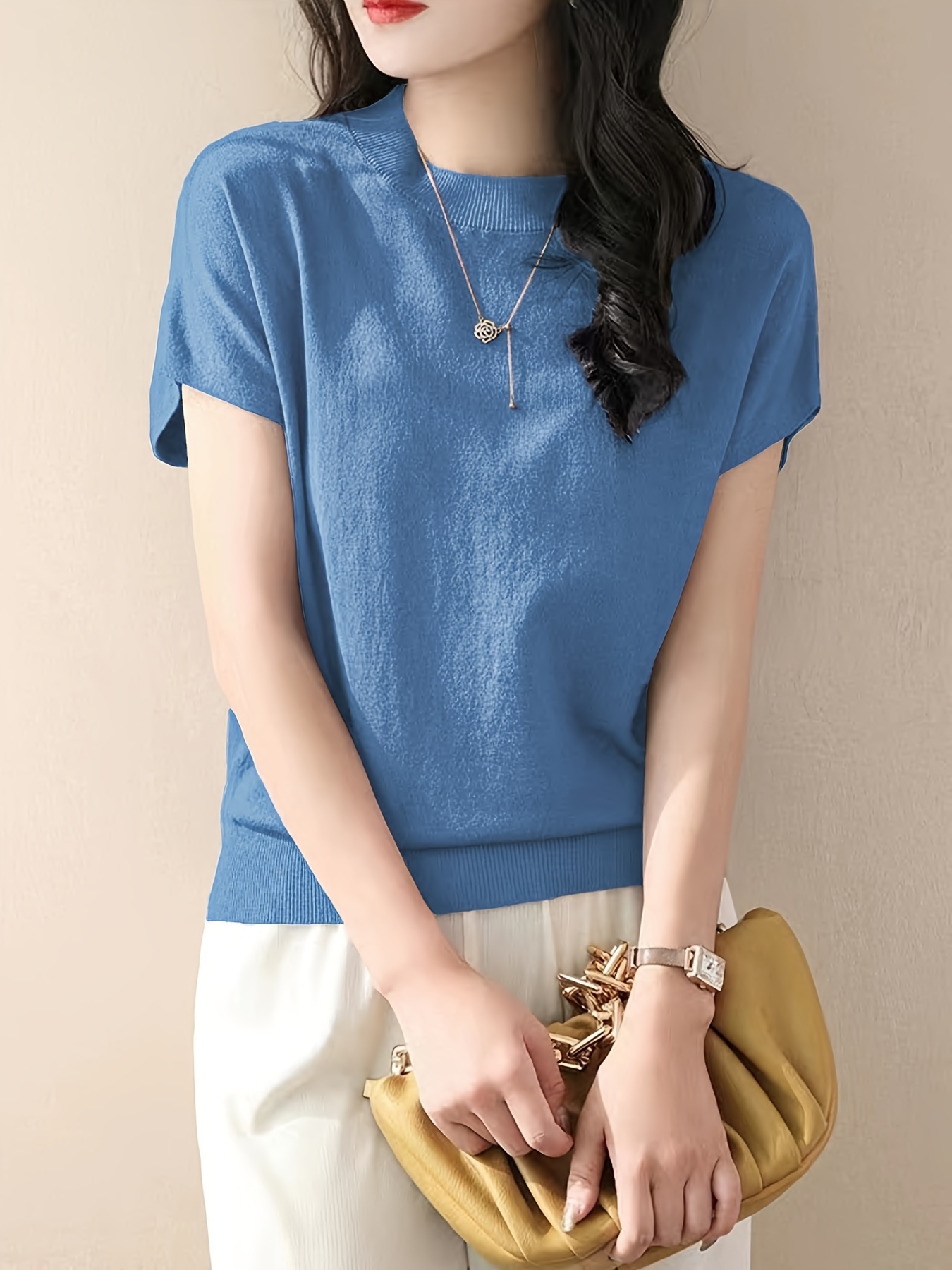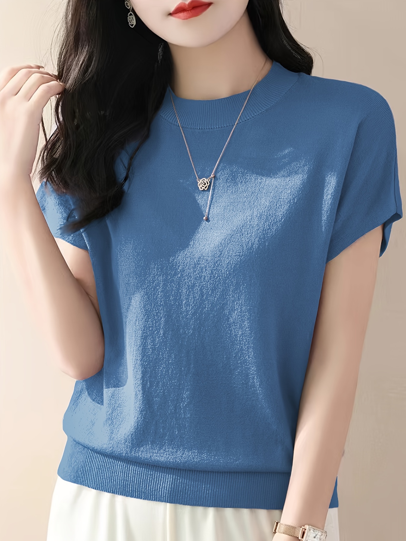 Be the first to review “Solid Color Crew Neck Pullover Sweater, Casual Short Sleeve Ribbed Knitted Sweater For Every Day, Women’s Clothing” Cancel reply