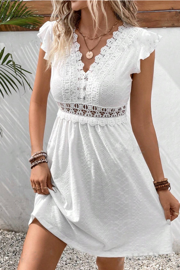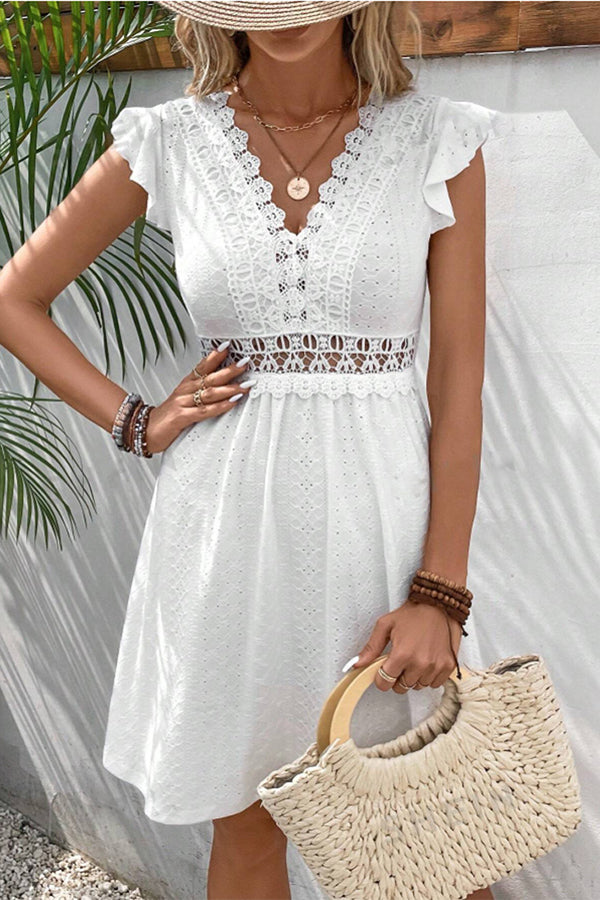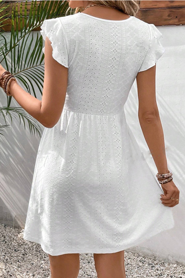 Solid Color Flutter Sleeve Hollow Waist Casual Dress