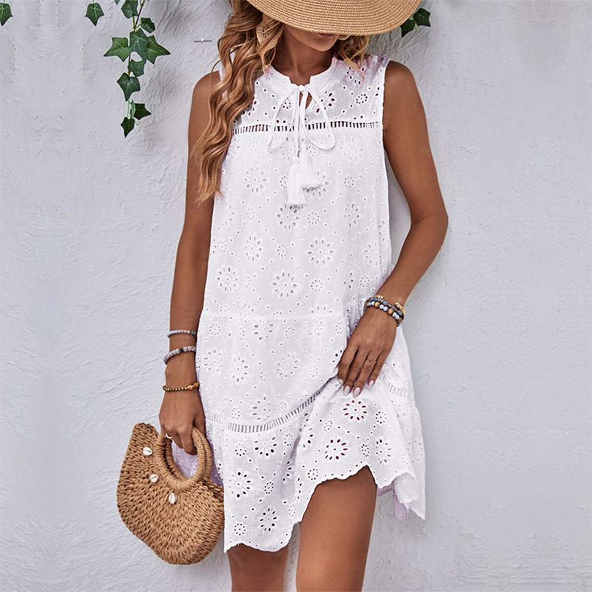 Solid Color Hollow Design Loose Style Dress