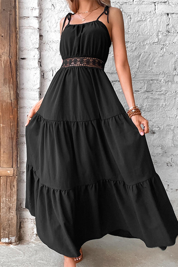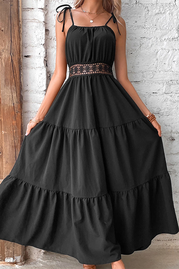 Solid Color Hollow Waist Casual Dress